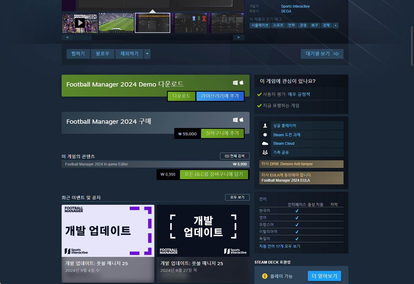 - "Football Manager 2024" - Steam 스팀 게임 페이지
