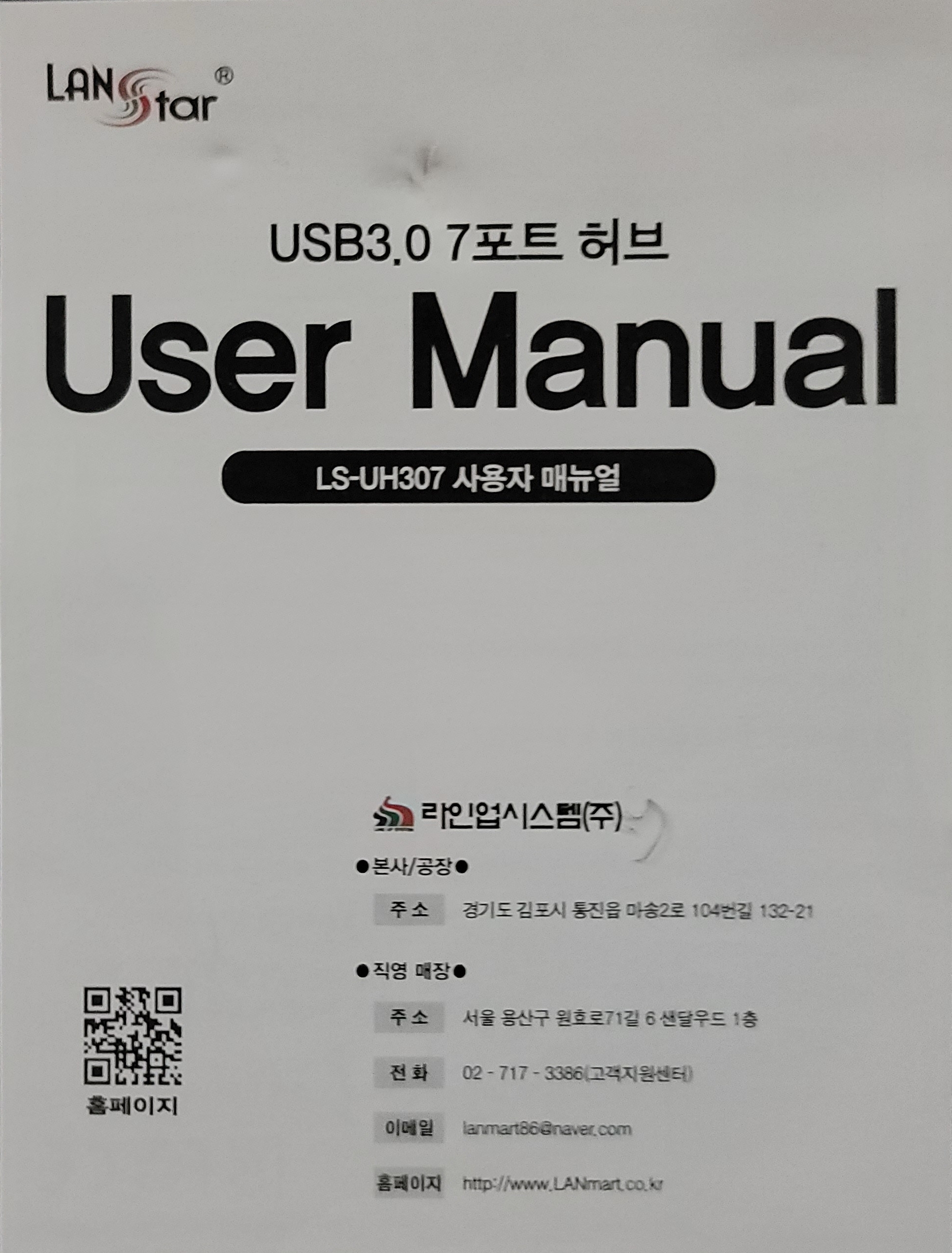 LanStar 랜스타 USB3.0 7포트 유전원 허브(LS-UH307) - 제품정보, 사용설명서