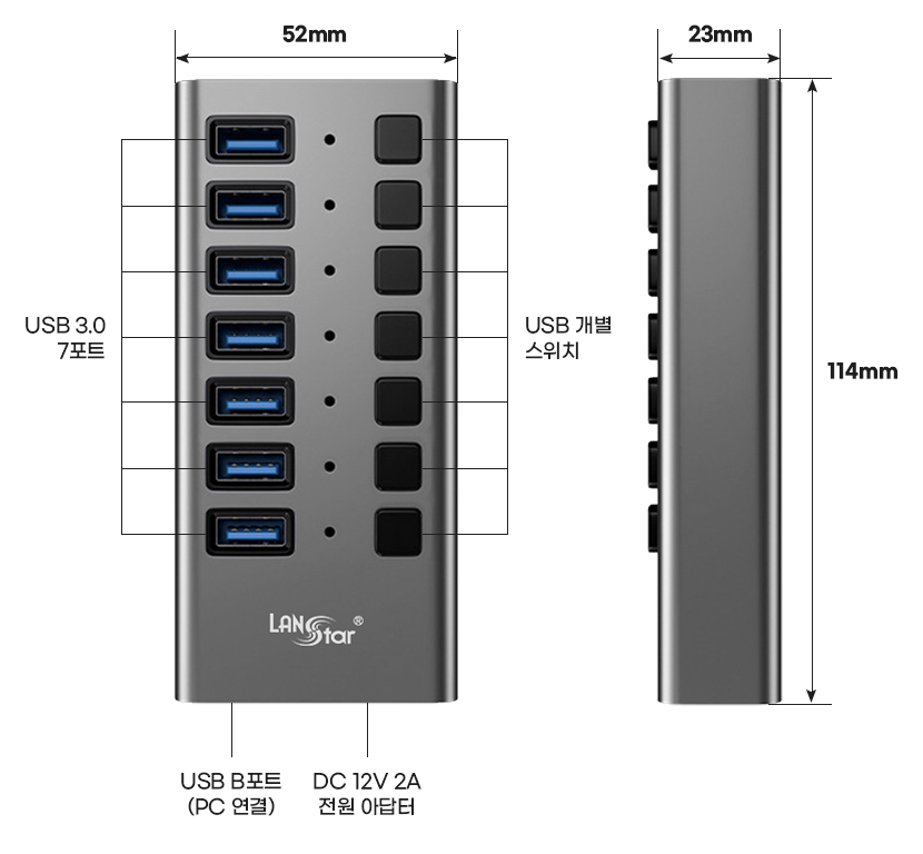 - "LanStar 랜스타 USB3.0 7포트 유전원 허브" 제품 정보/스펙