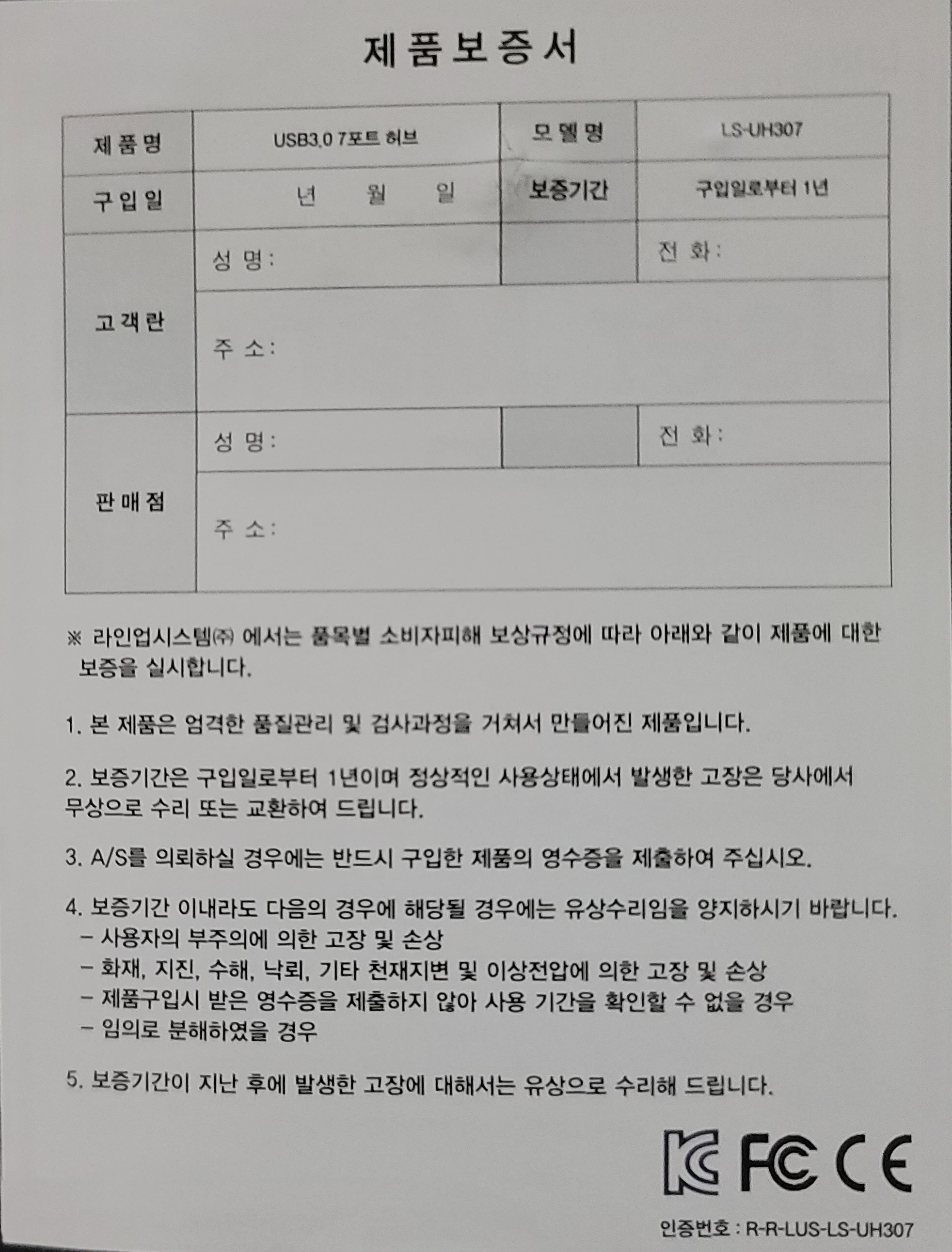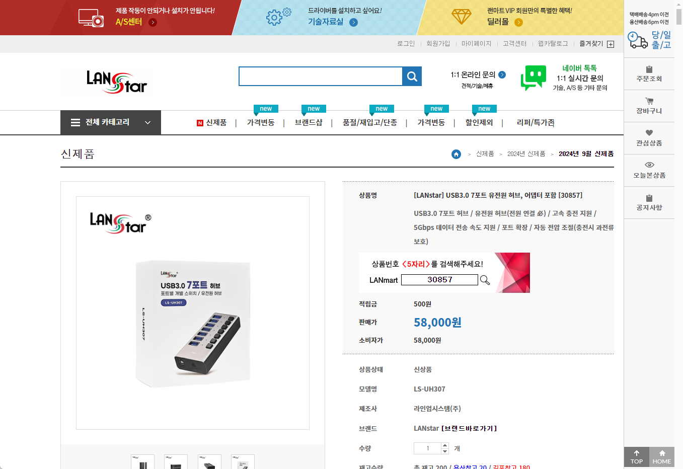 LanStar 랜스타 USB3.0 7포트 유전원 허브(LS-UH307) - 제품정보, 사용설명서