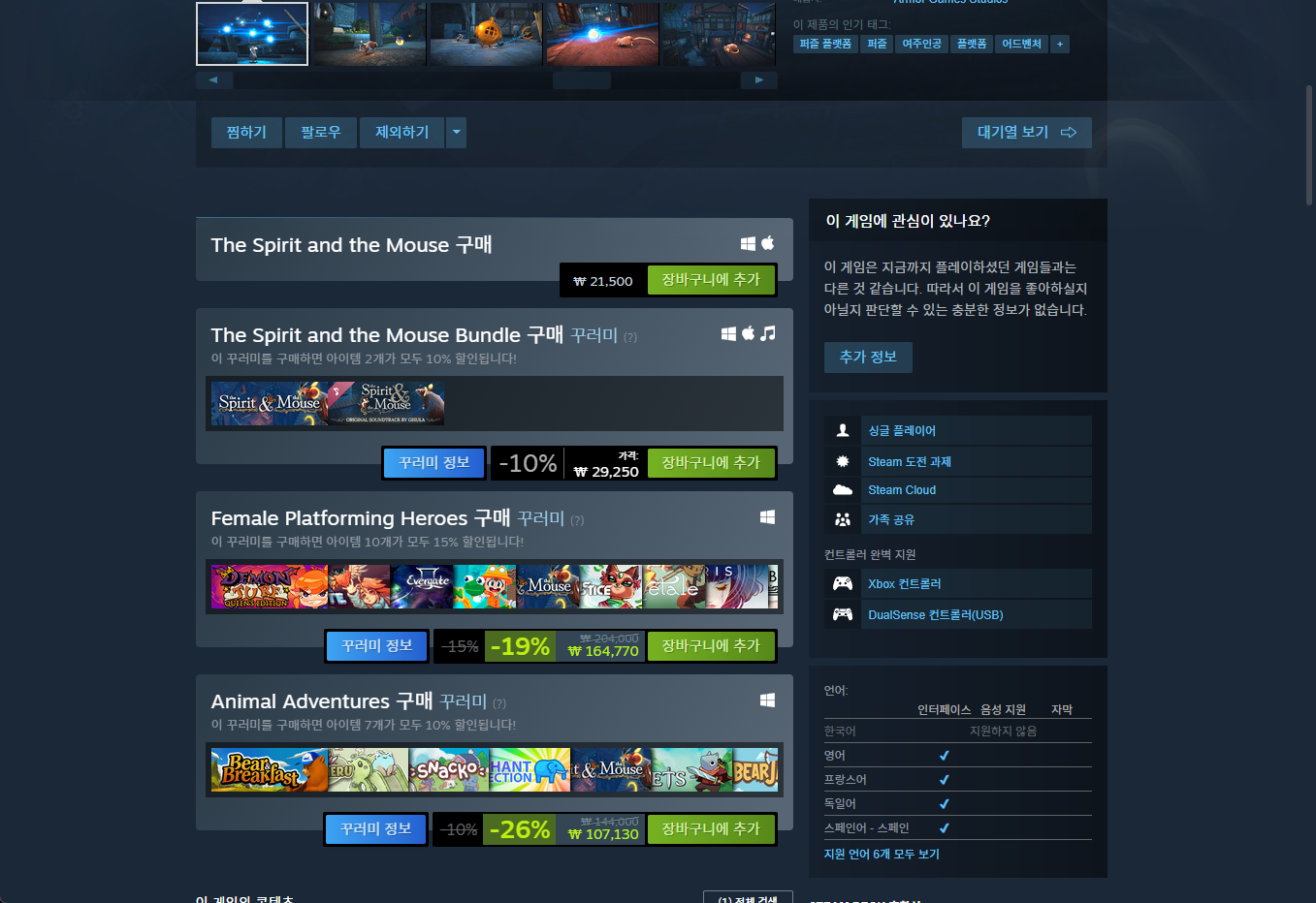 - "The Spirit and the Mouse" - Steam 스팀 게임 페이지