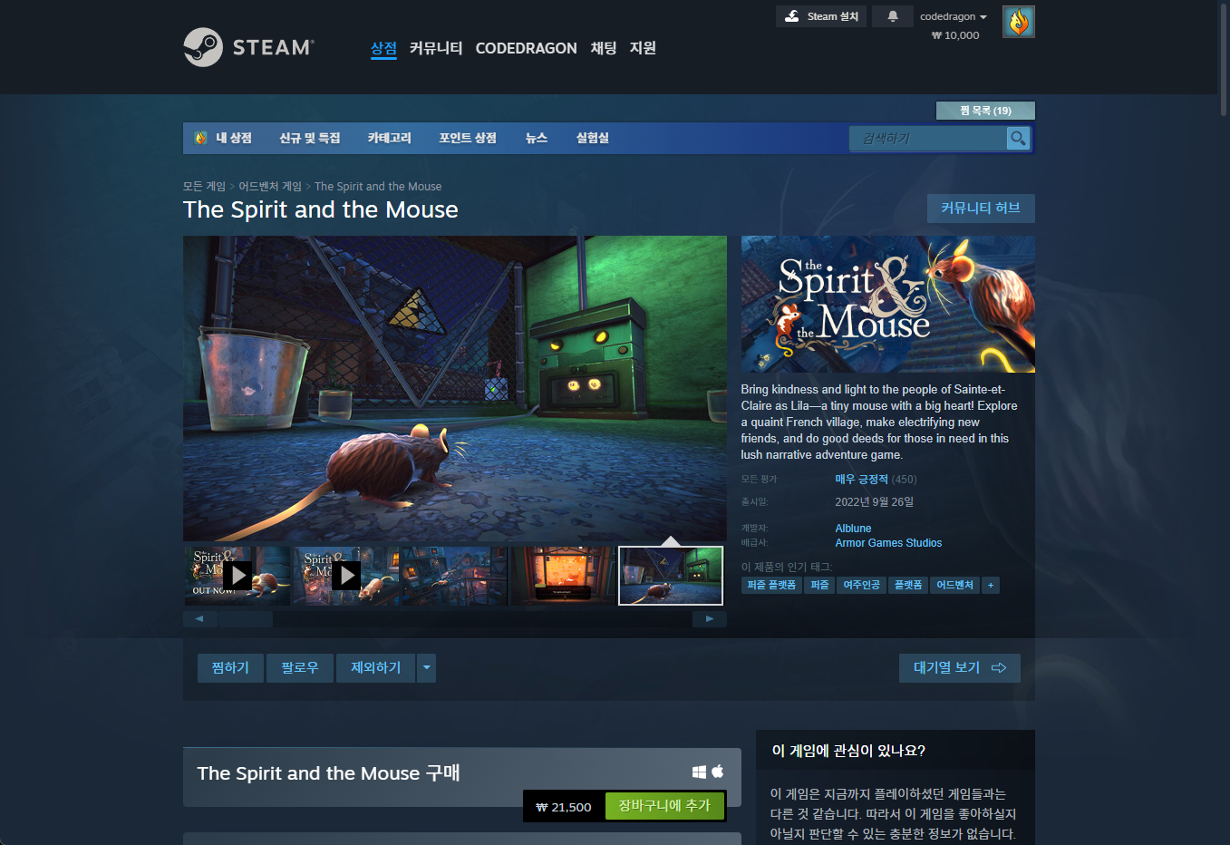 "The Spirit and the Mouse" - Steam 스팀 게임 페이지