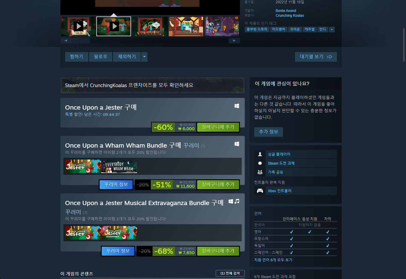 - "Once Upon a Jester" - Steam 스팀 페이지