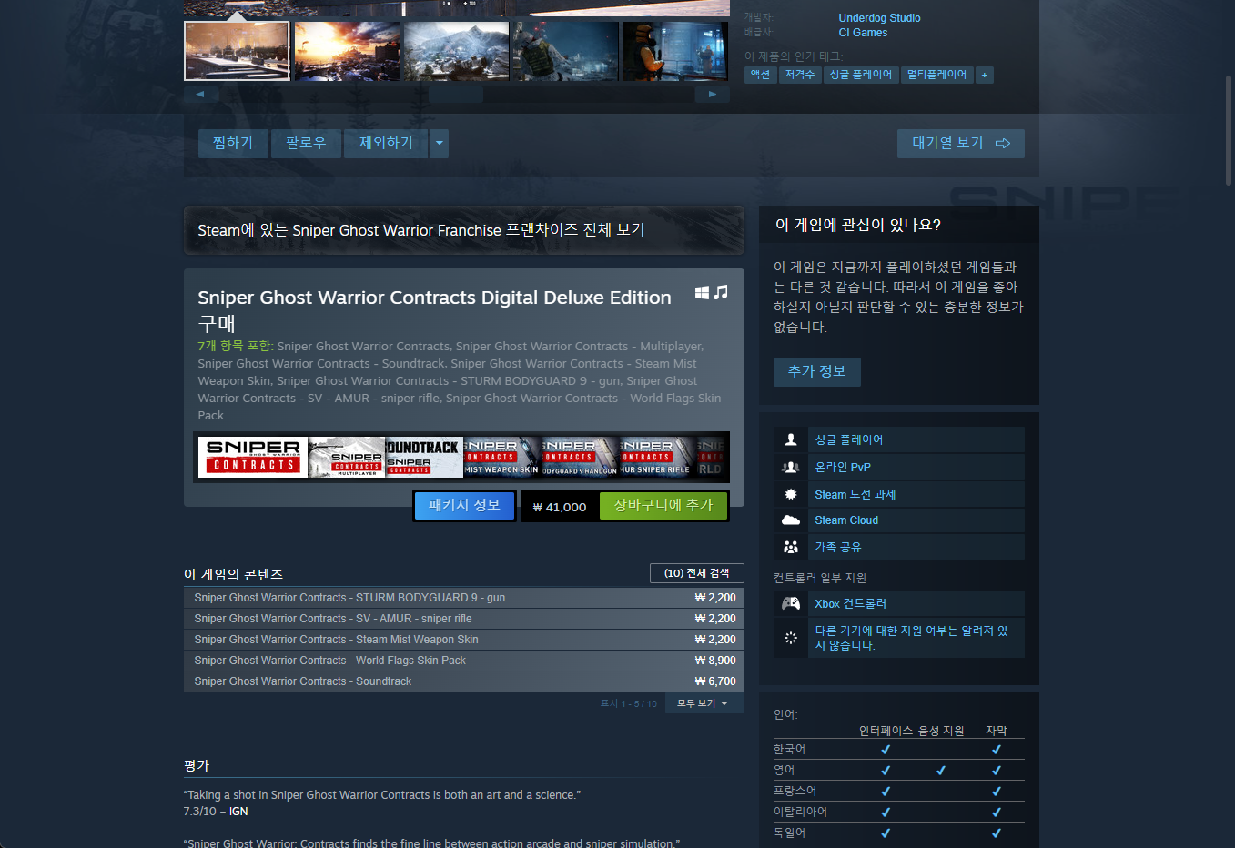 "Sniper Ghost Warrior Contracts" - Steam 스팀 게임 페이지