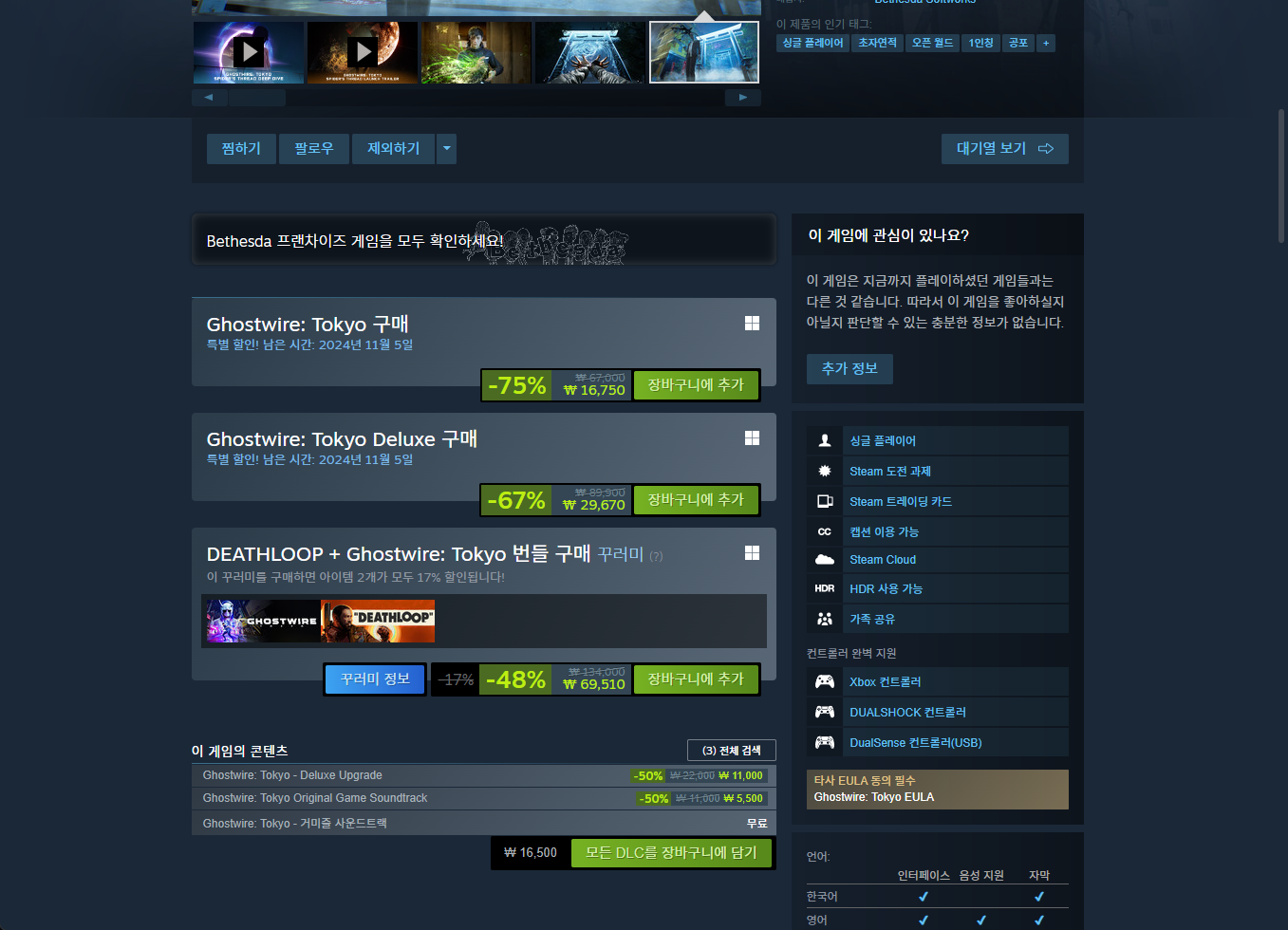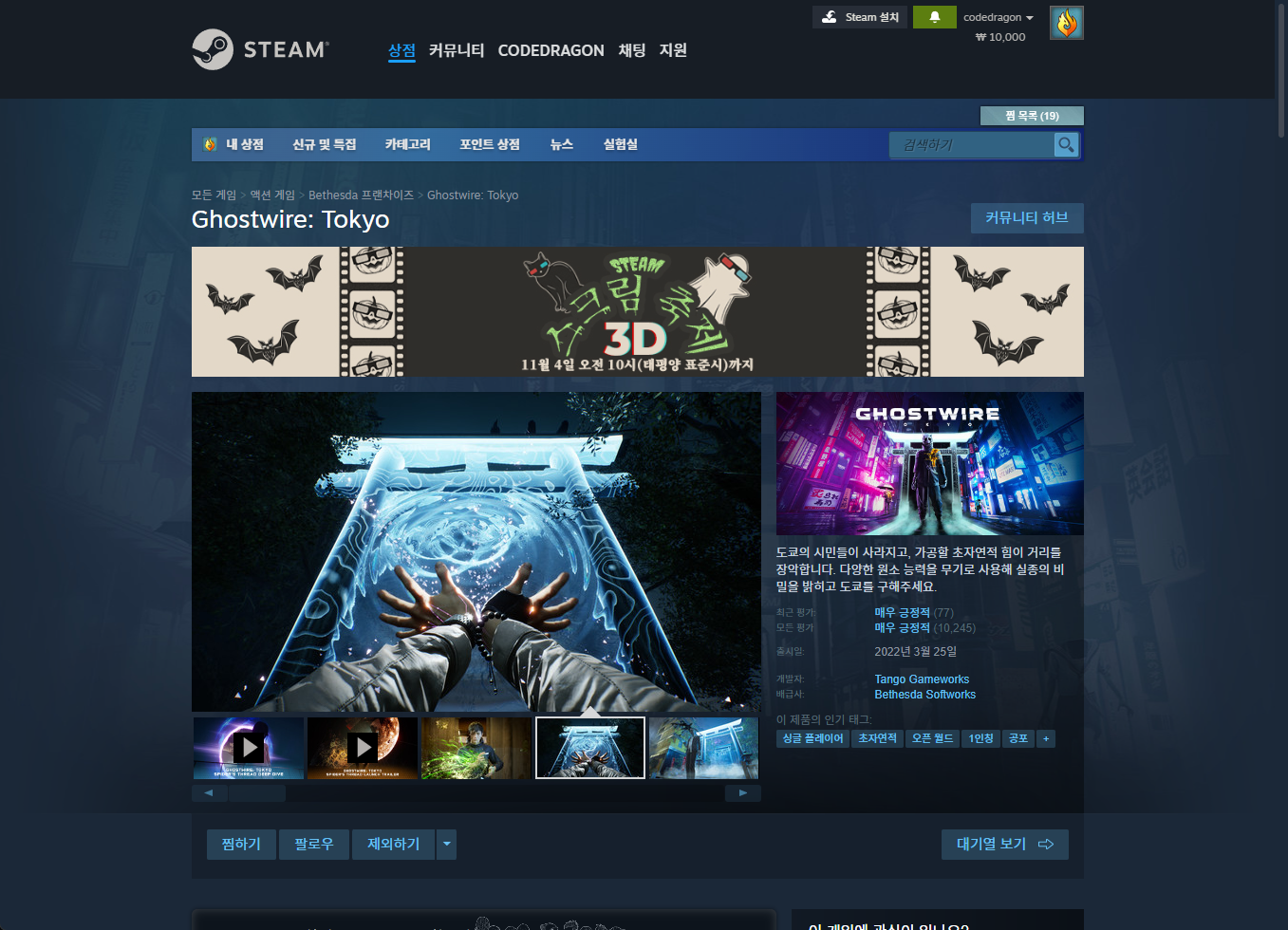 https://store.steampowered.com/app/1475810/Ghostwire_Tokyo/?l=koreana