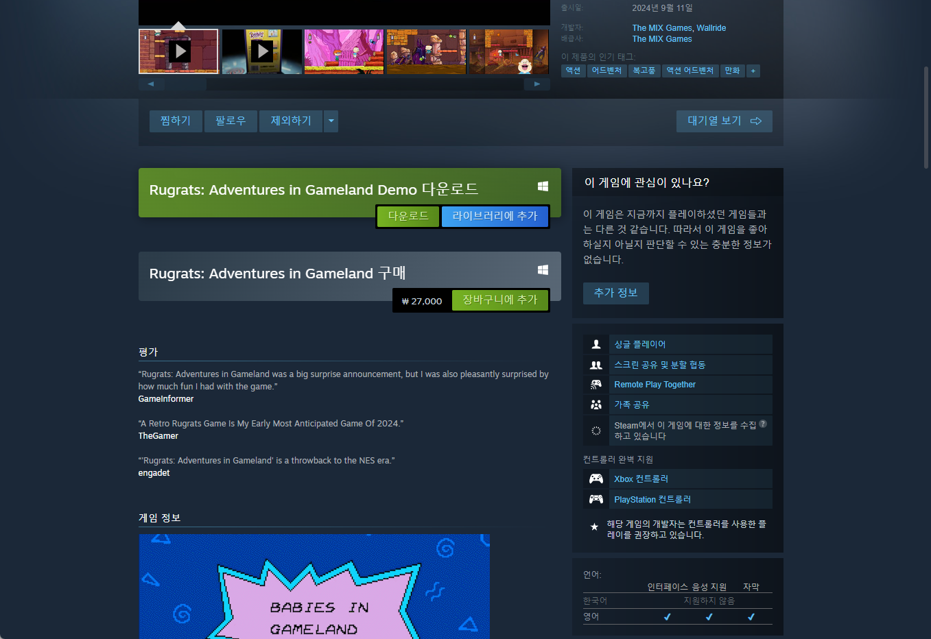 - "Rugrats: Adventures in Gameland" - Steam 스팀 게임 페이지