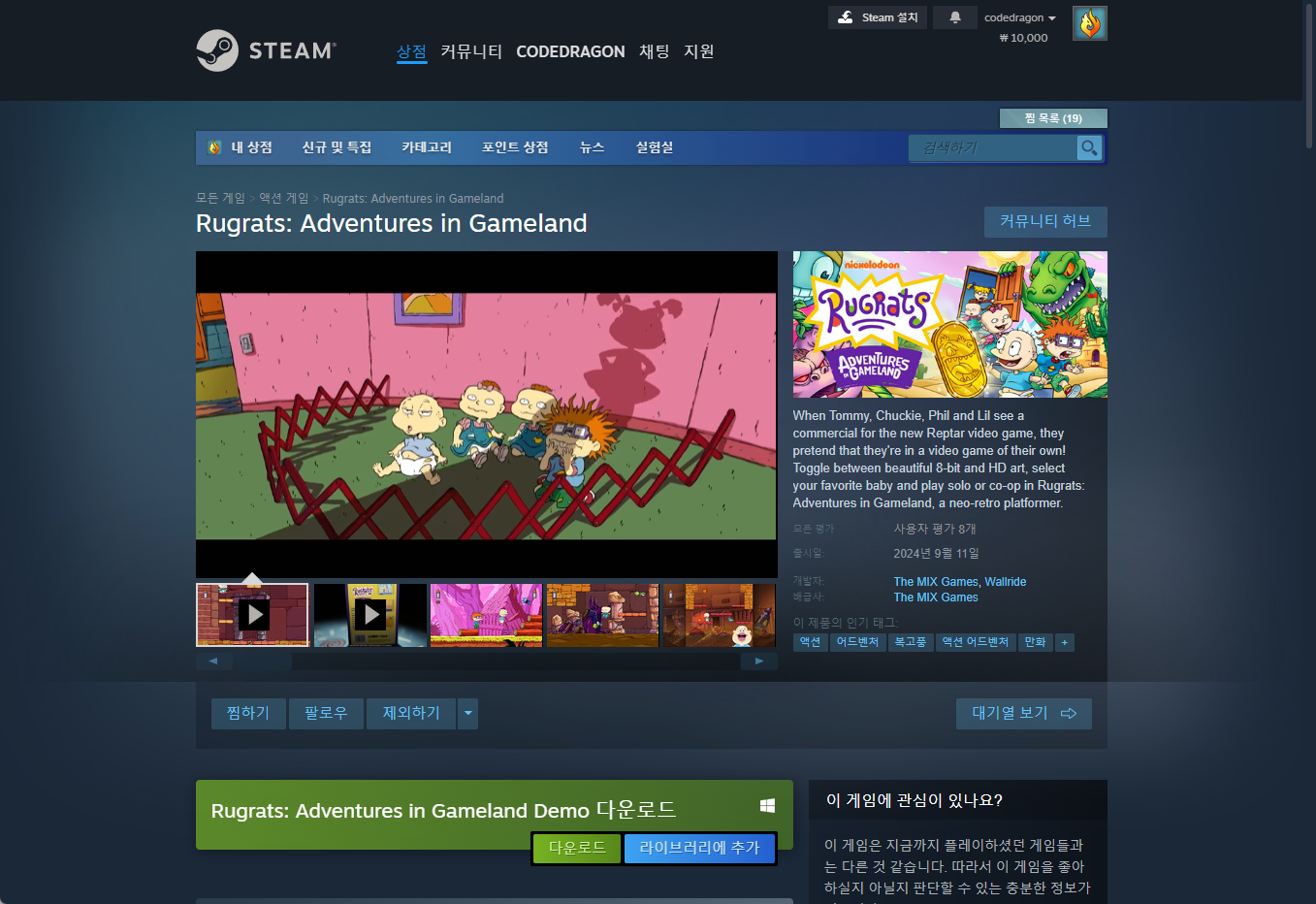 "Rugrats: Adventures in Gameland" - Steam 스팀 게임 페이지