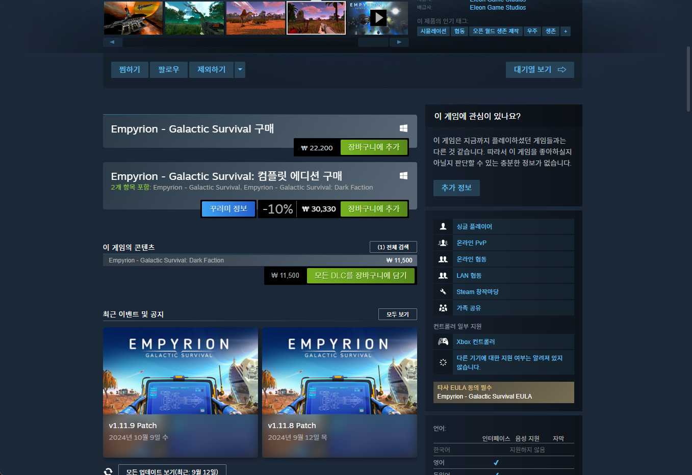 - "Empyrion - Galactic Survival" 한시적 무료게임 구매하기