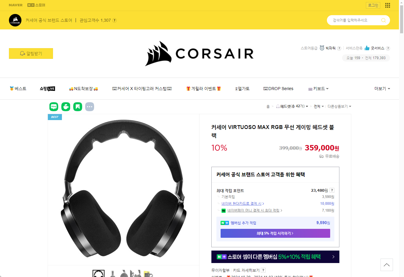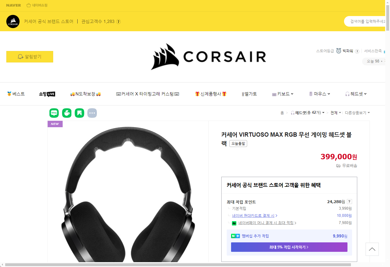 커세어 VIRTUOSO MAX RGB 무선 게이밍 헤드셋 - 스마트스토어 제품 상세정보 보기