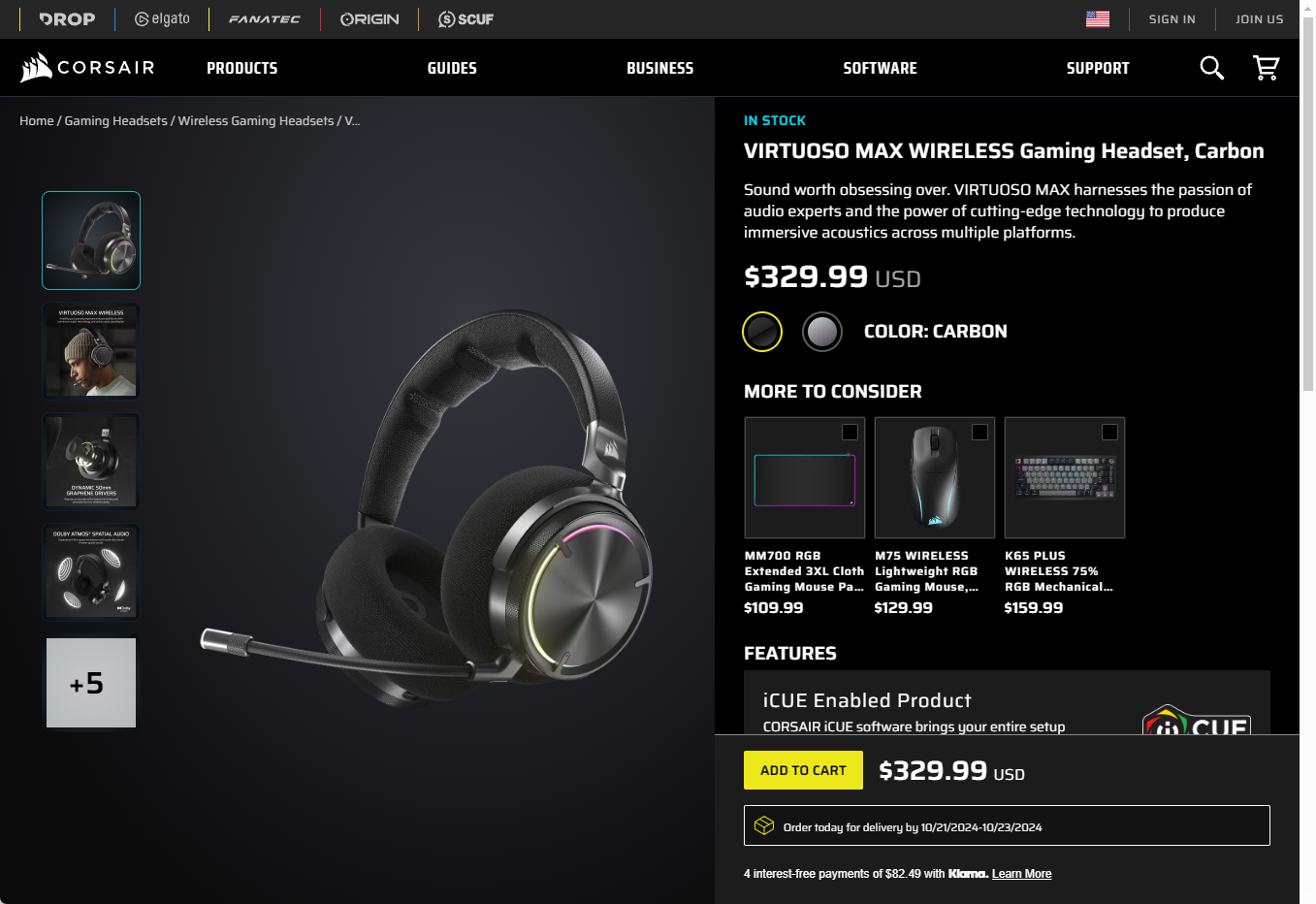 CORSAIR VIRTUOSO MAX RGB WIRELESS Headphones - 홈페이지 상세보기