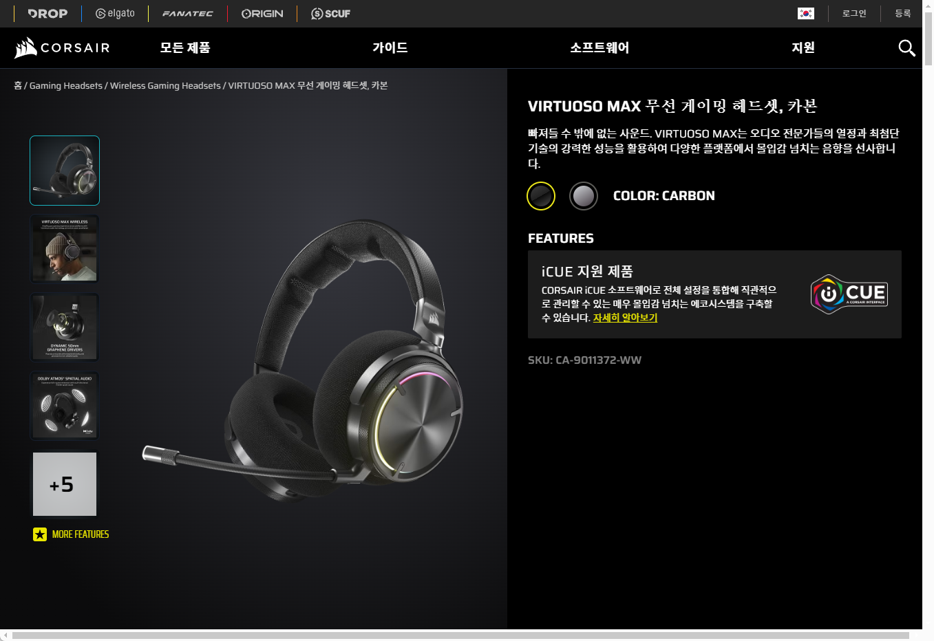 커세어 VIRTUOSO MAX RGB 무선 게이밍 헤드셋 - 홈페이지 상세보기