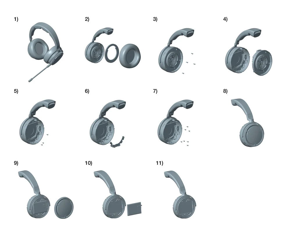커세어 VIRTUOSO MAX RGB 무선 게이밍 헤드셋 - 배터리 분리 방법