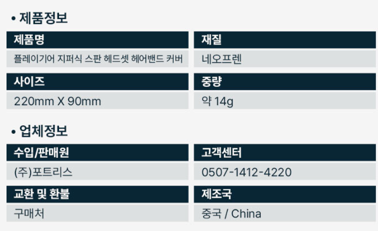- 지퍼식 스판 헤드셋 헤드밴드커버 - 제품크기, 사이즈, 구조