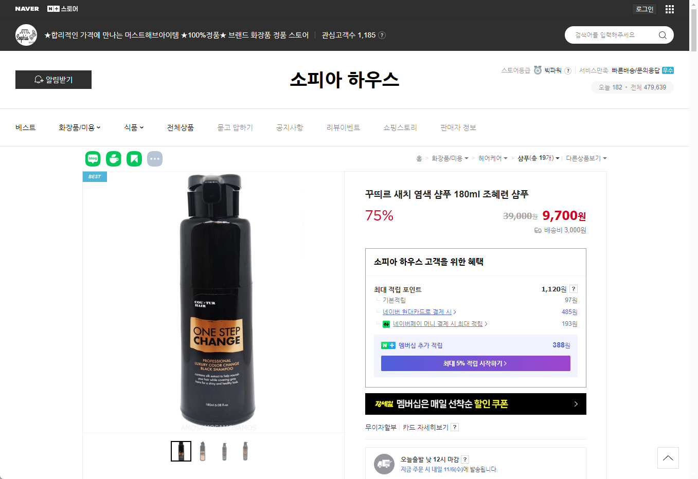 꾸띄르 새치 염색 샴푸로 구매했습니다.