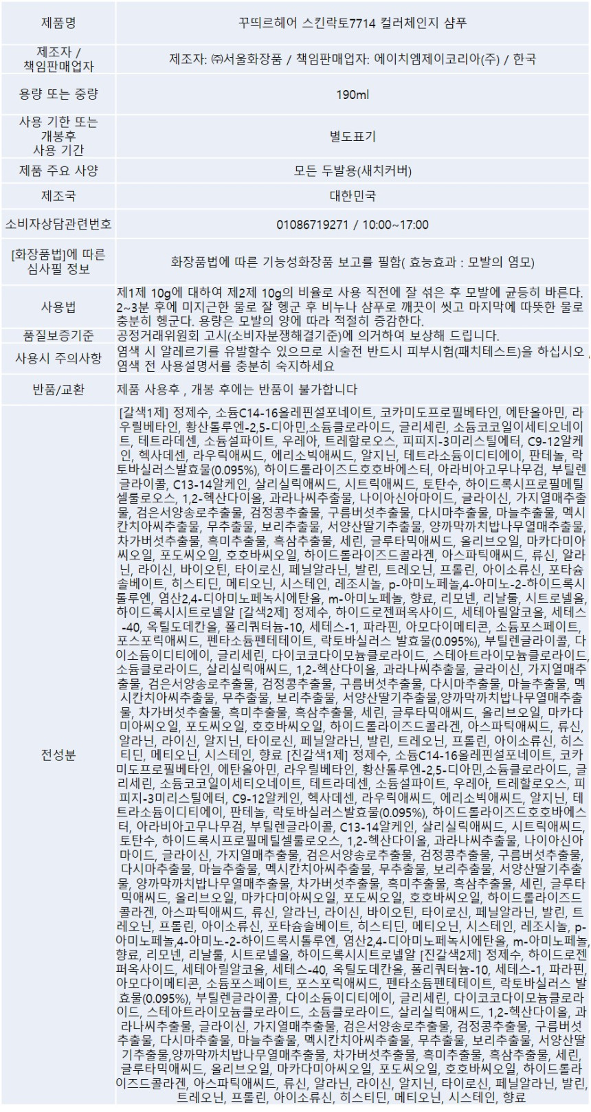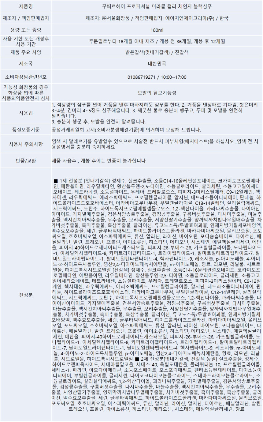 - 꾸띄르 새치 염색 샴푸 180ml 조혜련 샴푸 제품상세정보 - 꾸띄르 헤어 프로페셔널 미라클 체인지 블랙샴푸, 스킨락토 7714 컬러 체인지 블랙샴푸
