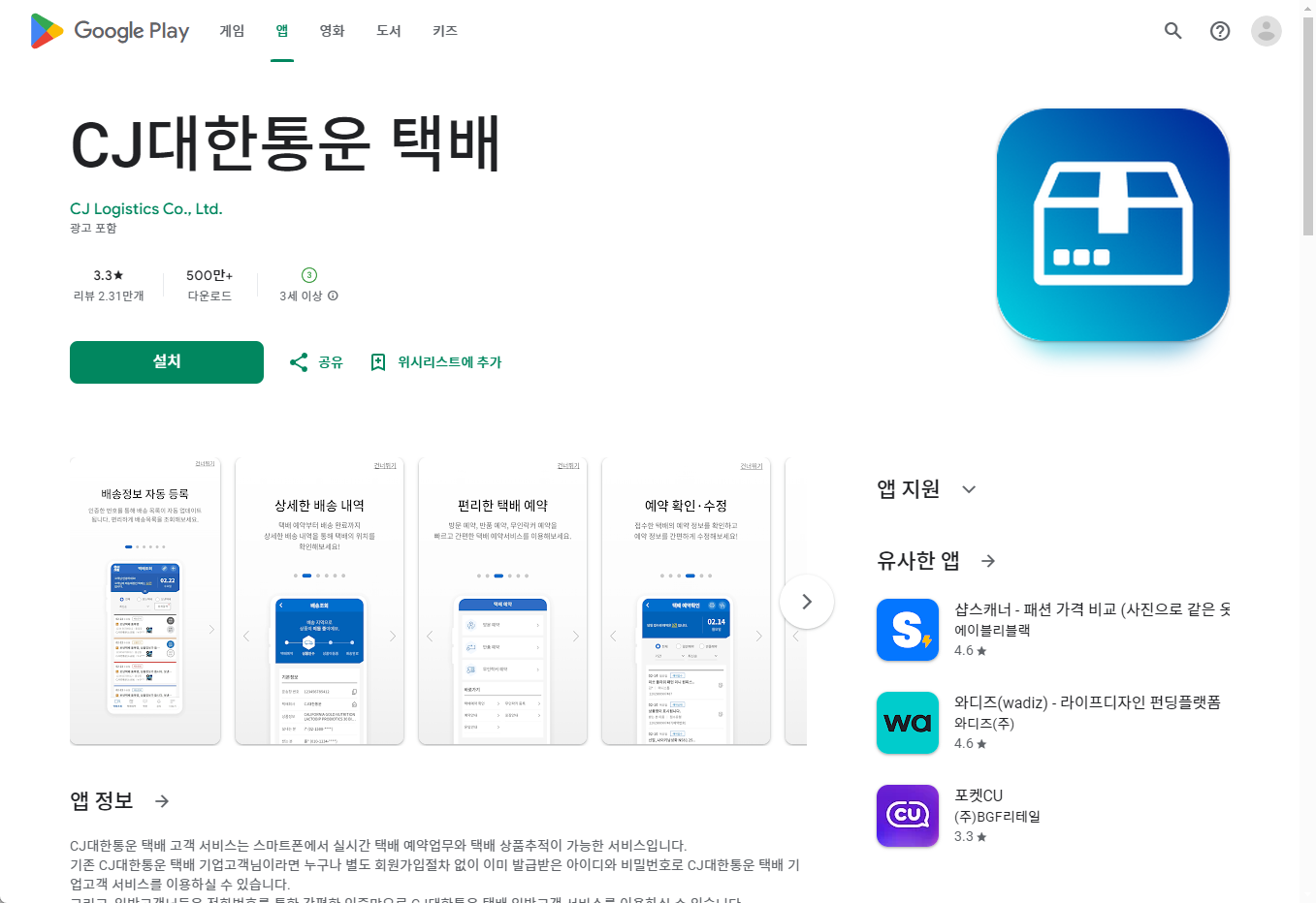 - "CJ 대한통운 택배" 앱 소개내용 확인하기