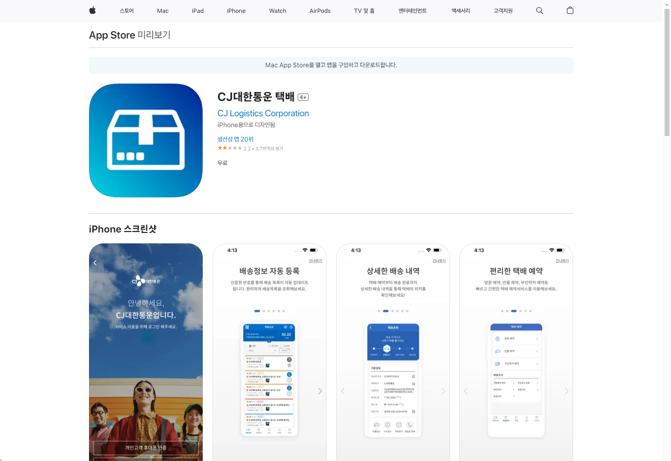 CJ 대한통운 택배 어플 - App Store 페이지로 이동하기