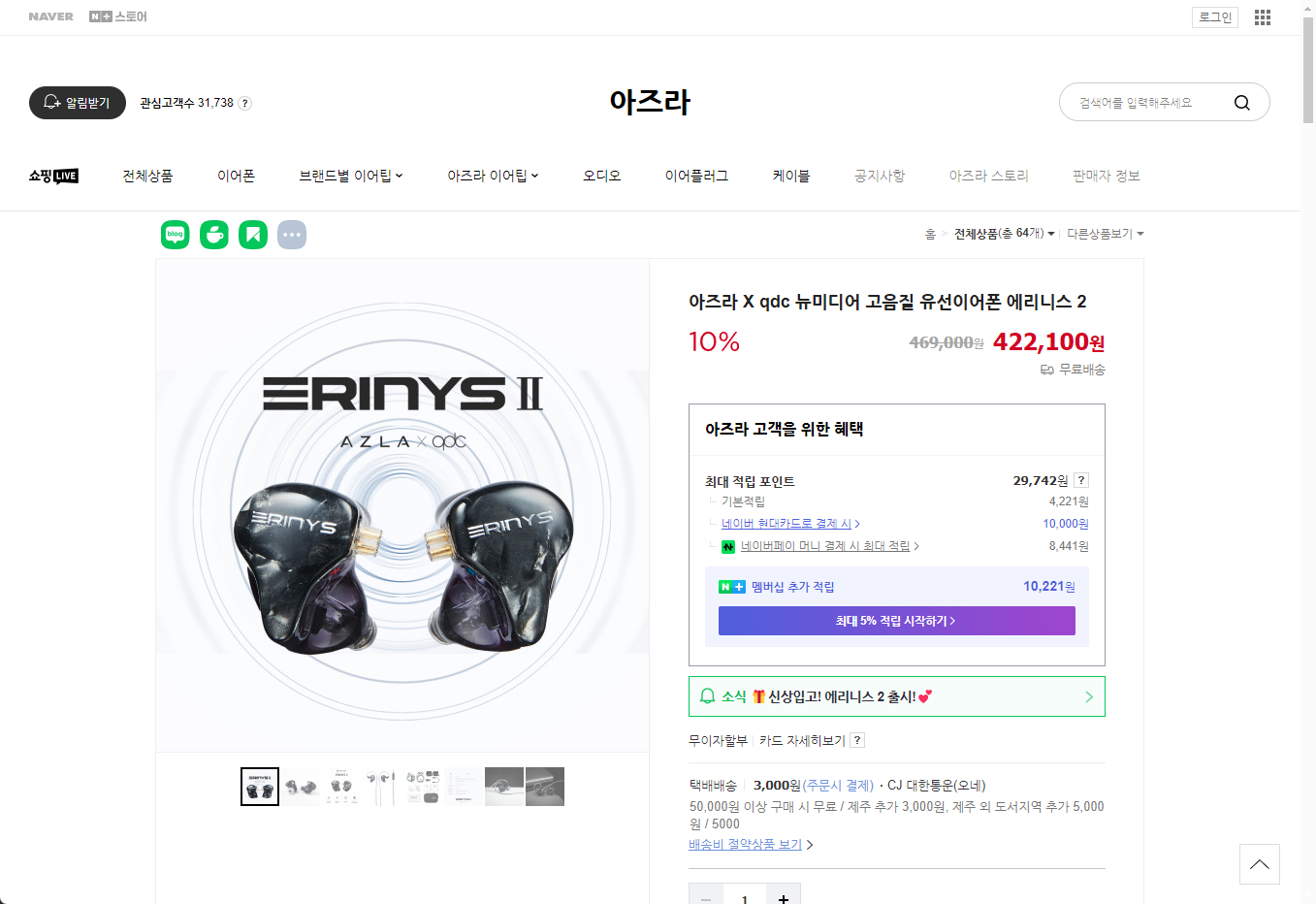 - 아즈라 X qdc 뉴미디어 고음질 유선이어폰 에리니스 제품 상세정보