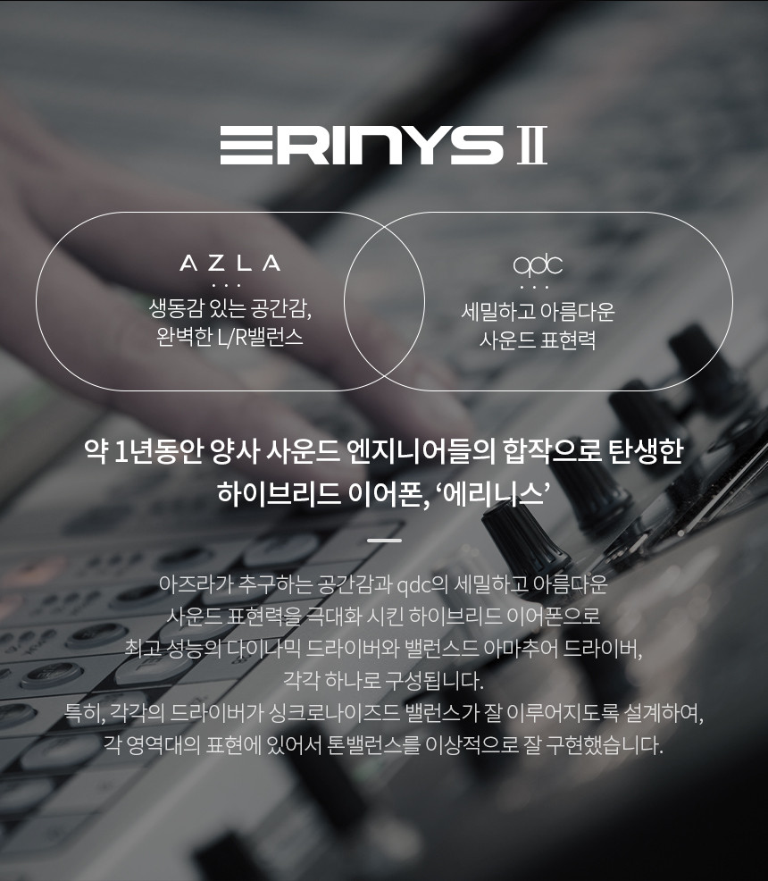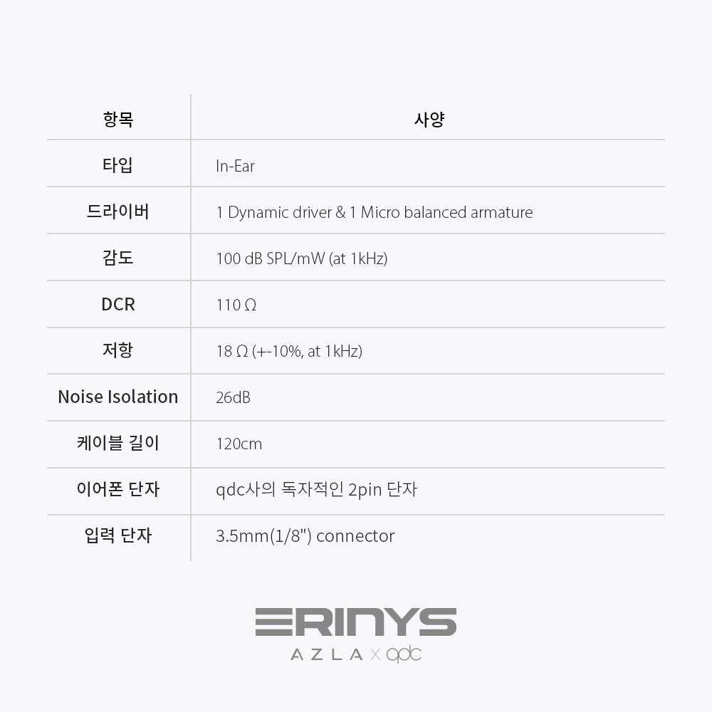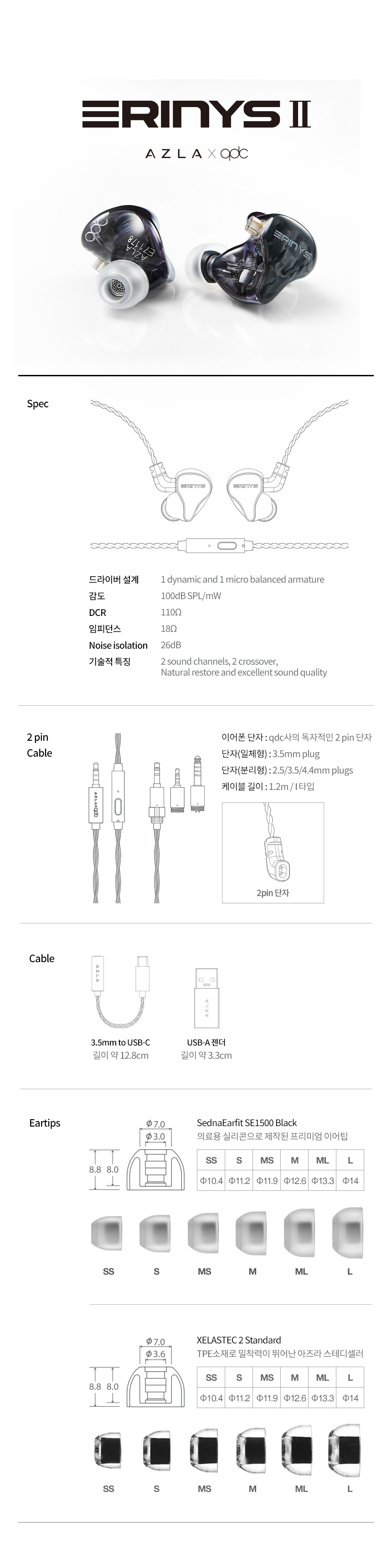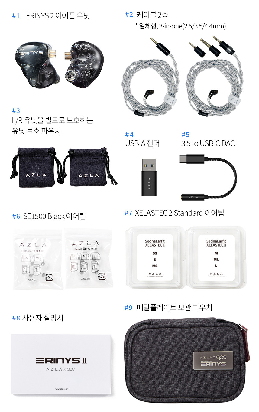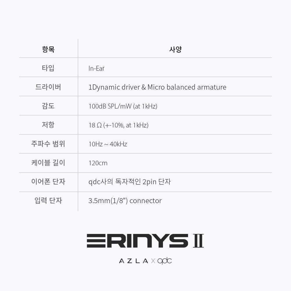 "아즈라 X qdc 에리니스 2" 제조사의 공식 페이지와 판매 페이지 참고했습니다.