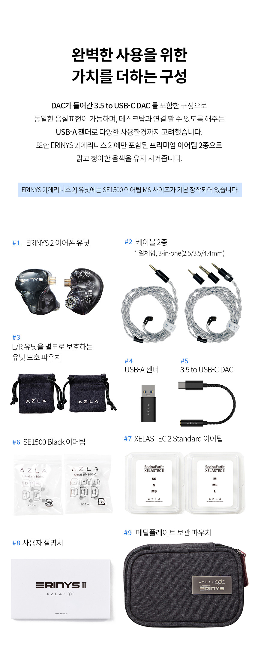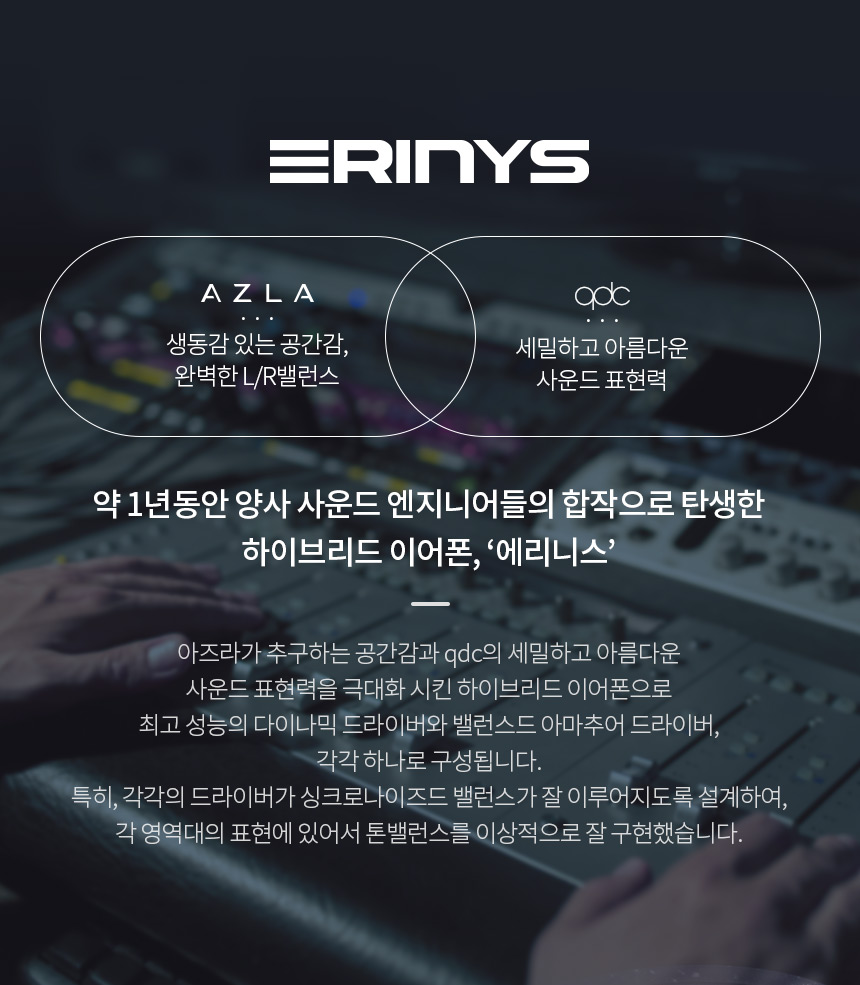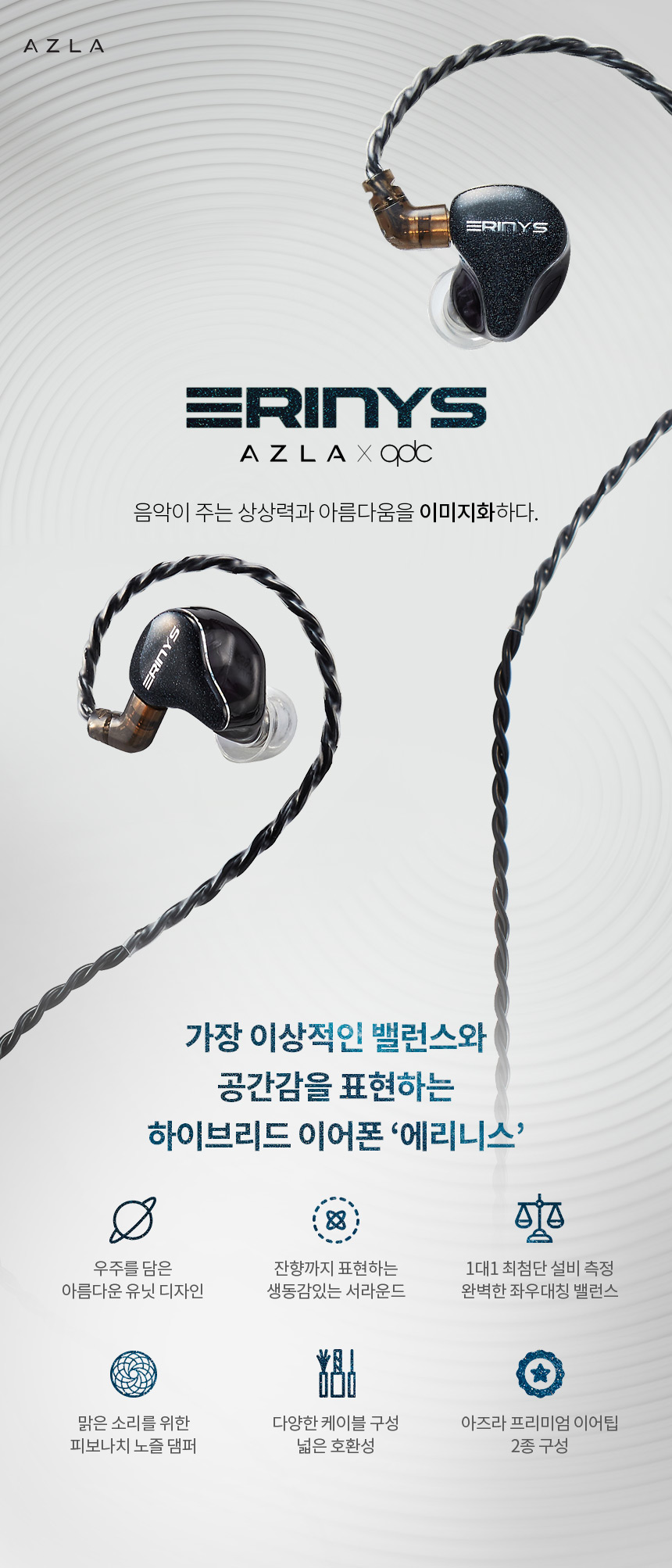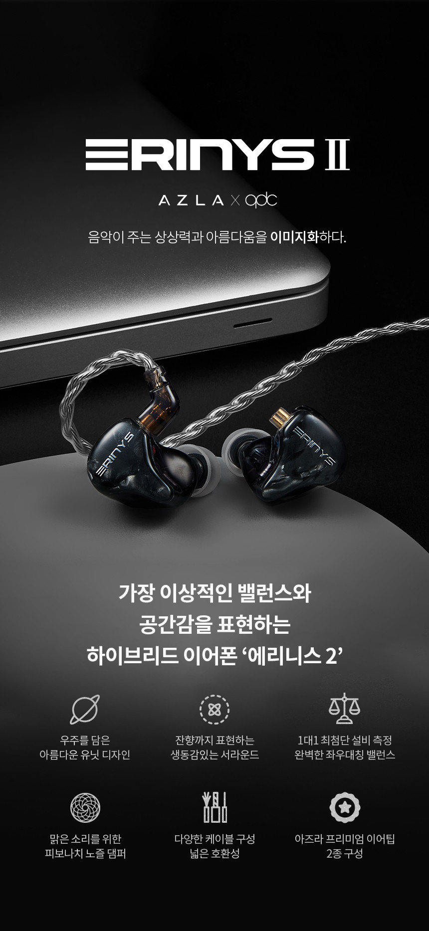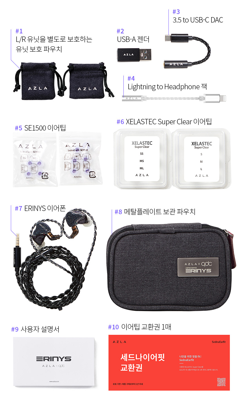 "아즈라 X qdc 에리니스 2" 제조사의 공식 페이지와 판매 페이지 참고했습니다.