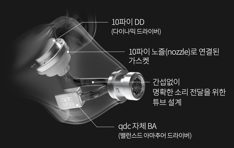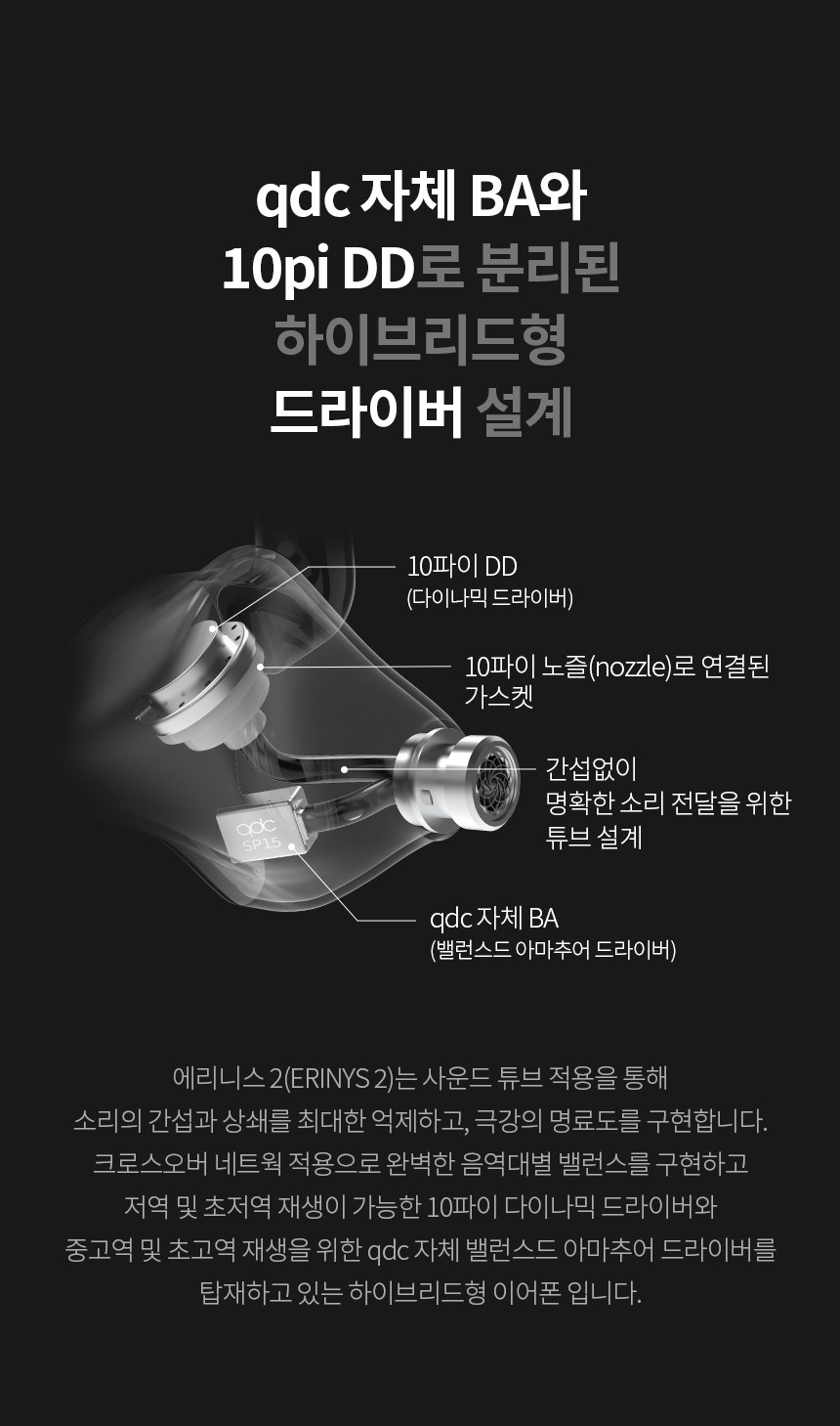 | 드라이버 | 1DD 1BA 하이브리드 이어폰 (1 Dynamic Drive and 1 micro Balaced Armature) |