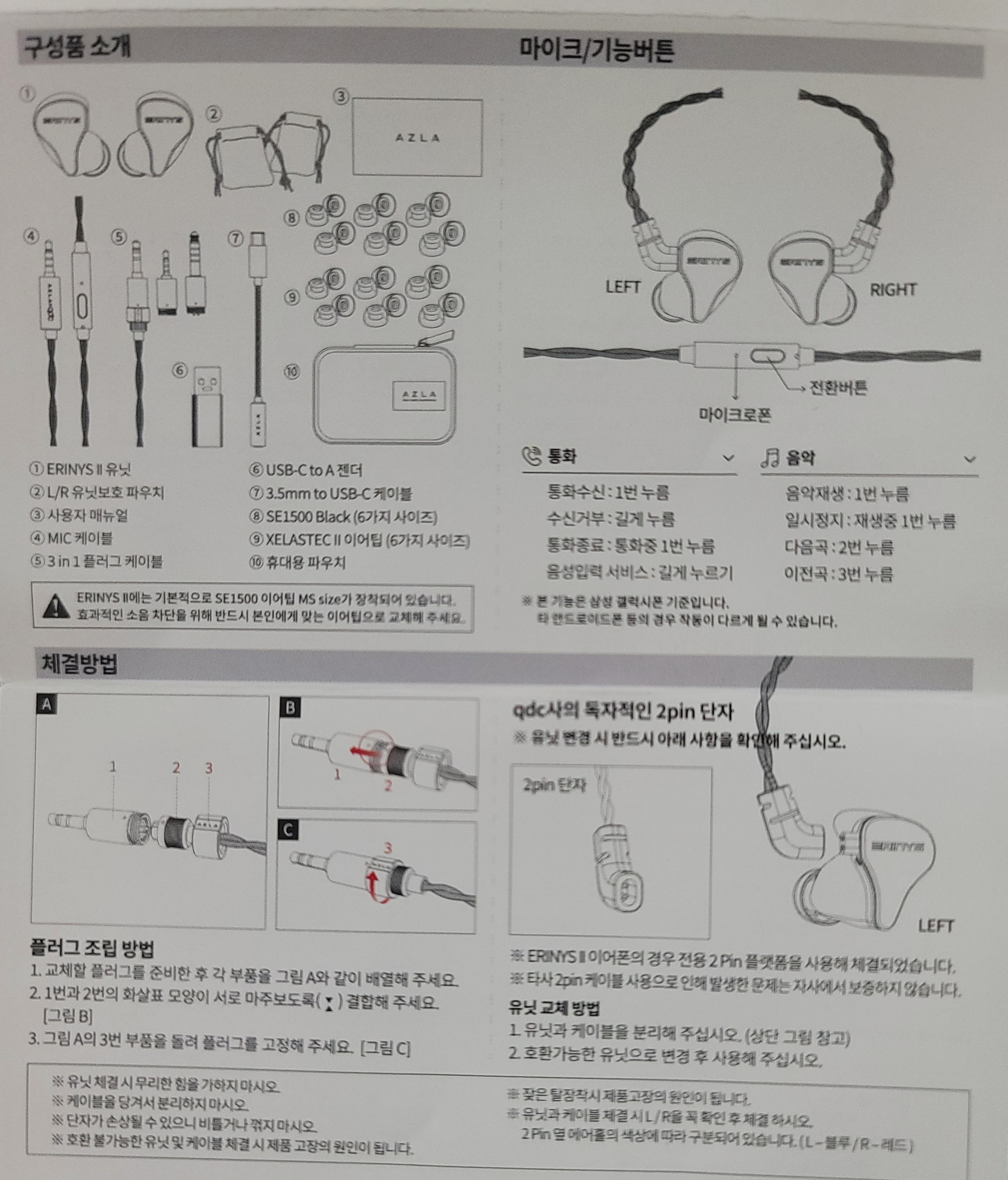 해당 포스팅은 구매한 "아즈라 X qdc 에리니스 2"제품 이해하고 찾아보기 쉽게 필요한 부분 정리한 내용입니다.