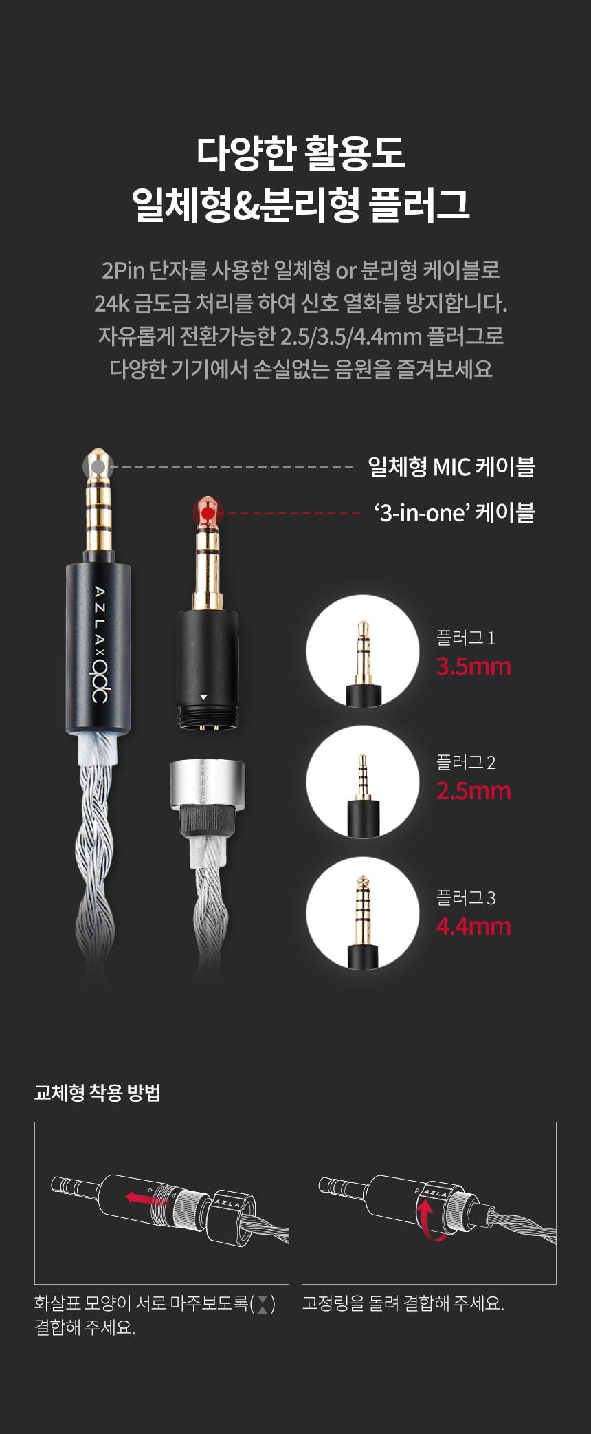 2pin 일체형 & 분리형 케이블 제공