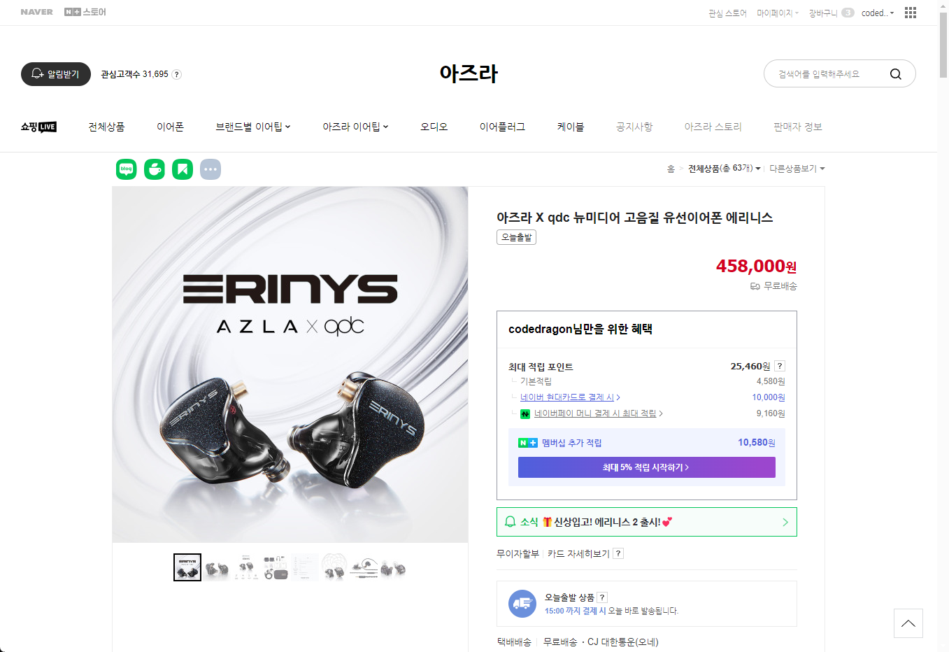 "아즈라 X qdc 에리니스 2" 제품 사용하면서 느낀 장단점에 대한 부분도 업데이트하겠습니다.