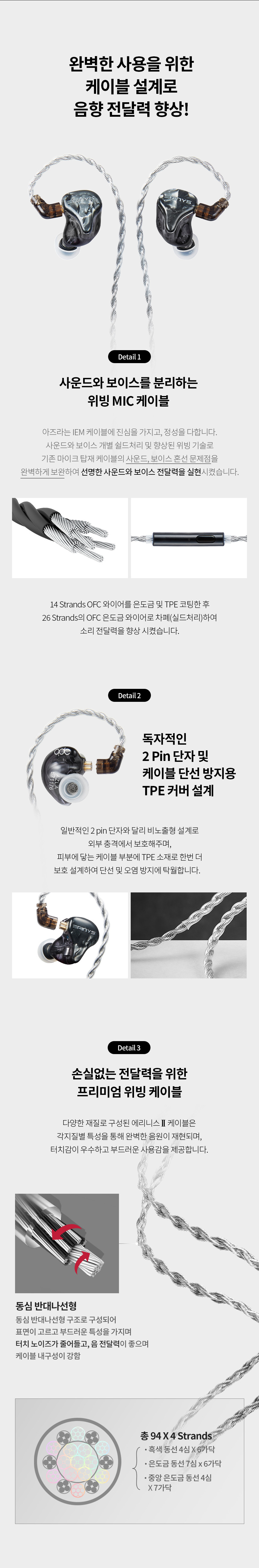 | 드라이버 | 1DD 1BA 하이브리드 이어폰 (1 Dynamic Drive and 1 micro Balaced Armature) |