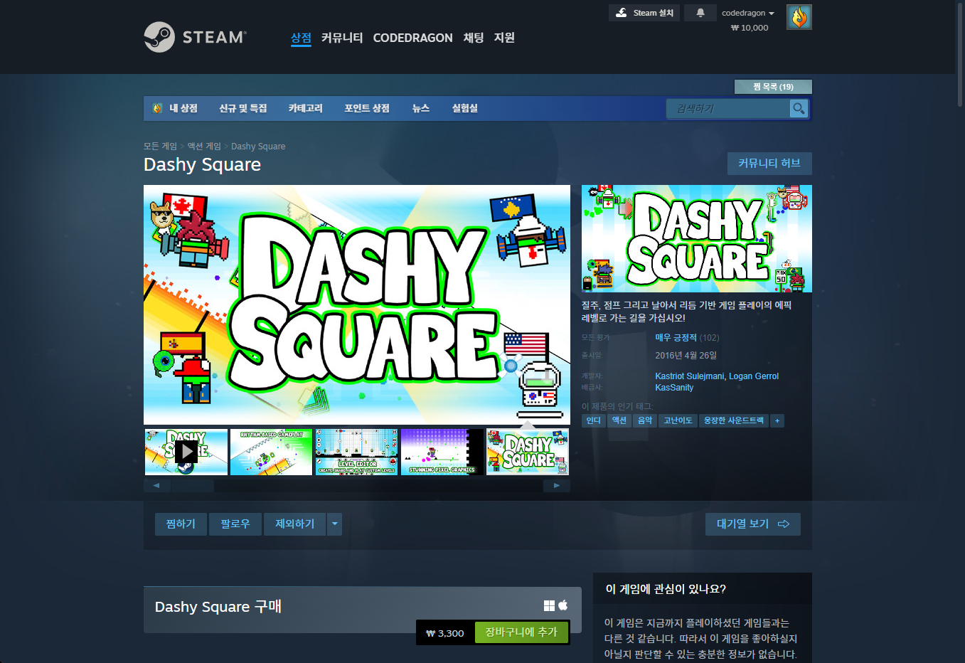 ₩3,300 → ₩ 0(Free) Dashy Square 무료 - 인디갈라 indiegala 무료 소장 기회 기간한정 indiegala FREE GAME, Limited time
