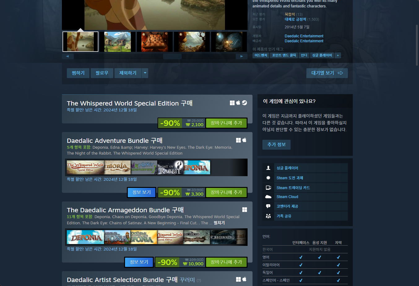 "The Whispered World: Special Edition" - Steam 스팀 페이지
