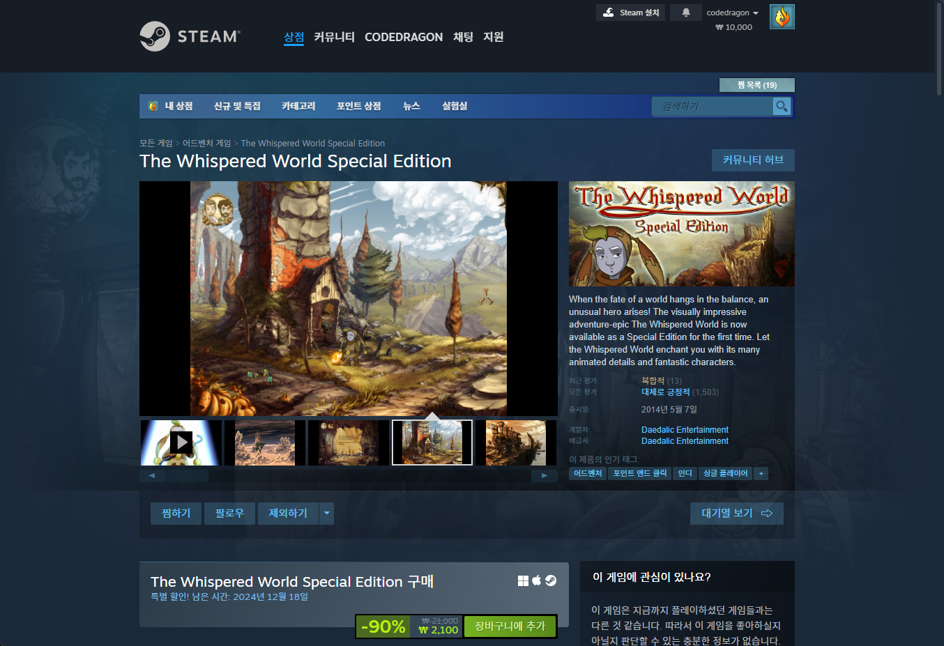- "The Whispered World: Special Edition" - Steam 스팀 페이지