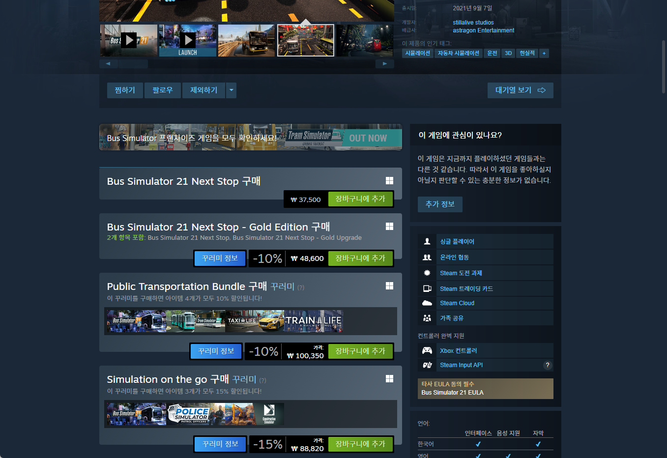 - "Bus Simulator 21 Next Stop" - Steam 스팀 게임 페이지