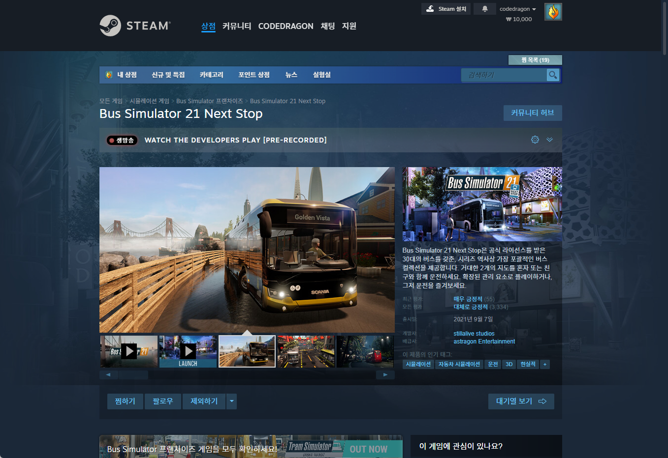 - "Bus Simulator 21 Next Stop" - Steam 스팀 게임 페이지