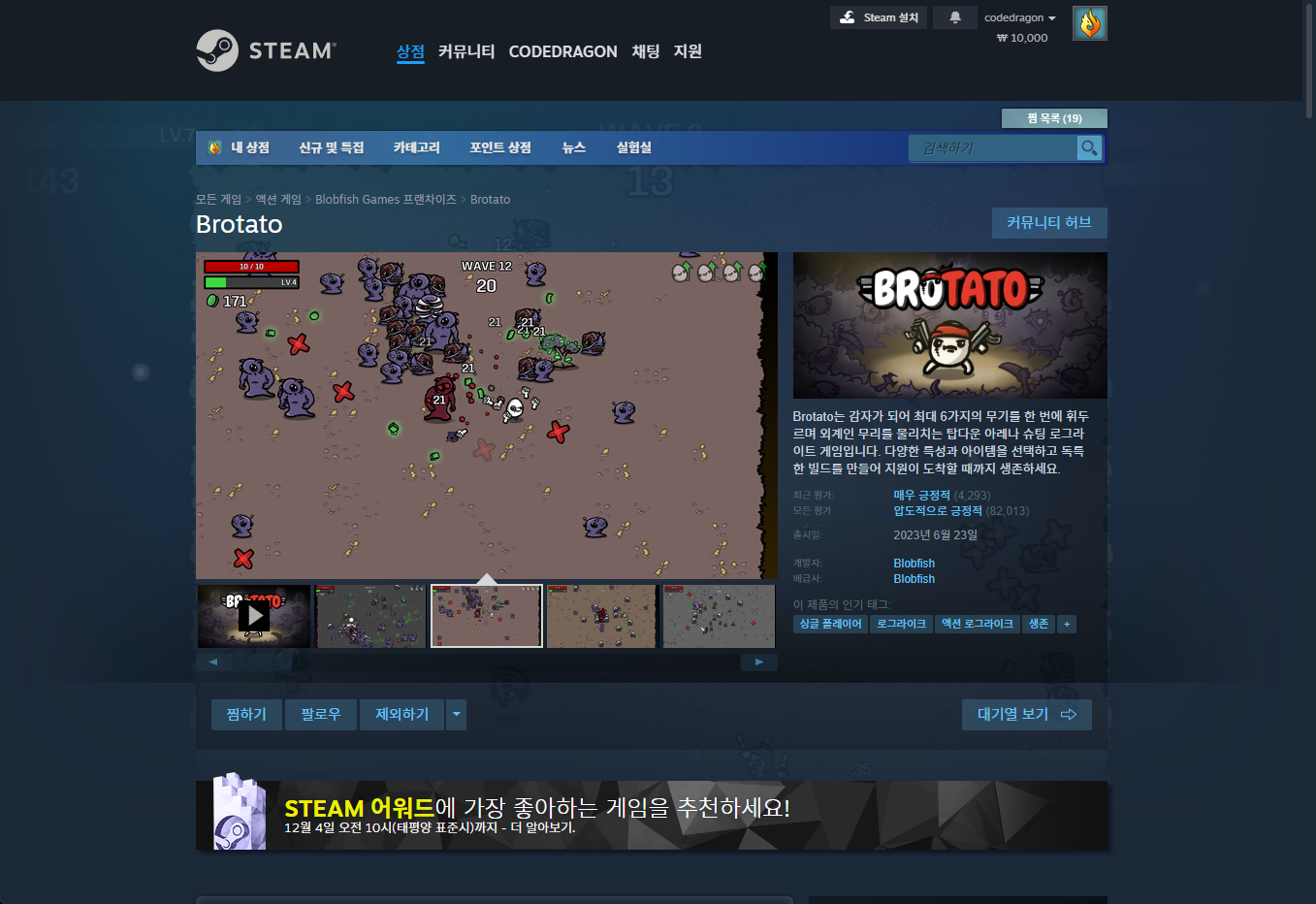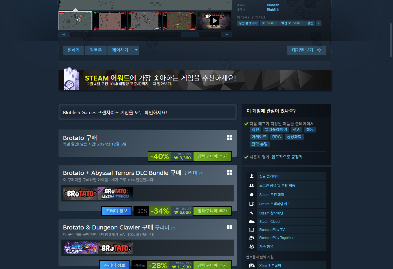 - "Brotato" - Steam 스팀 게임 페이지