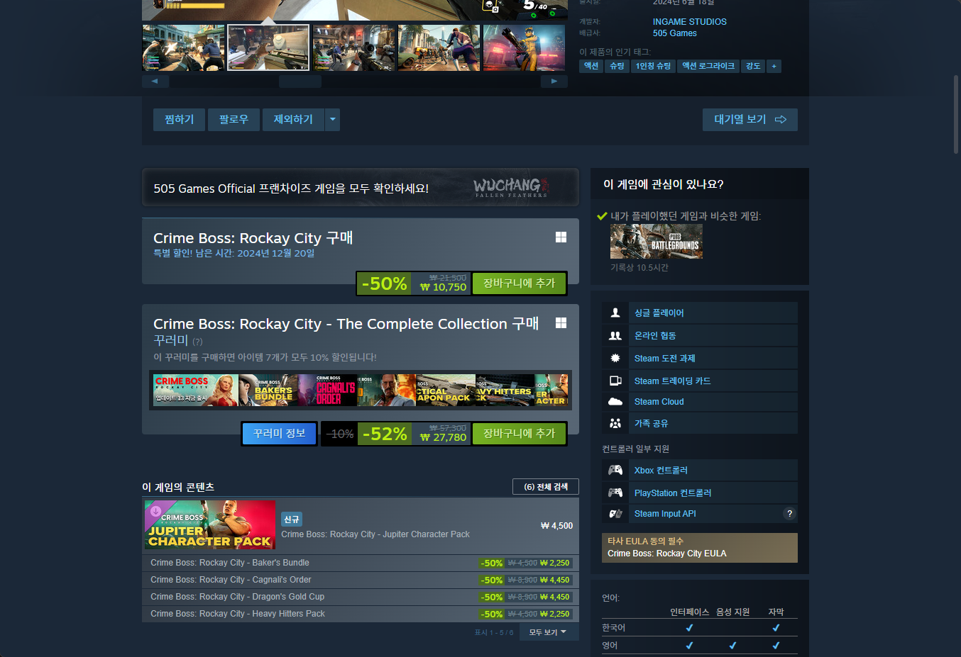 - "Crime Boss: Rockay City" 게임 라이브러 확인하기
