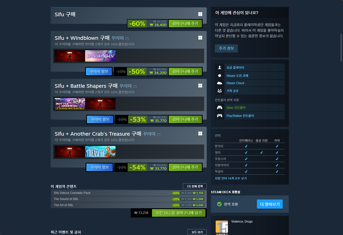 ₩41,000 → ₩0(FREE) Sifu 시푸 무료로 받기 영구소장; 에픽 게임즈 epic games EGS 한시적 무료 Get free copy