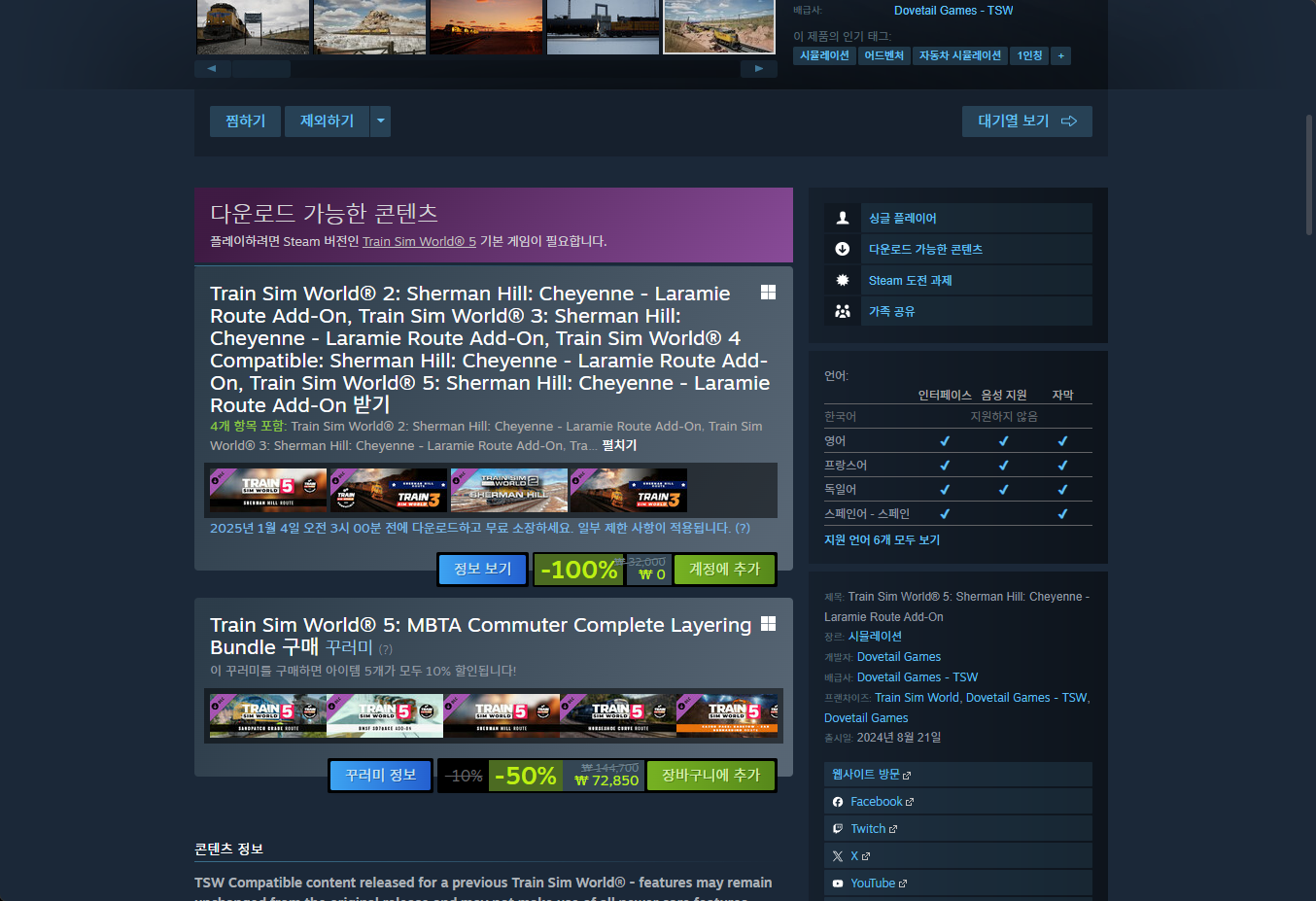 - "Train Sim World 5: Sherman Hill: Cheyenne - Laramie" 게임 보유 확인