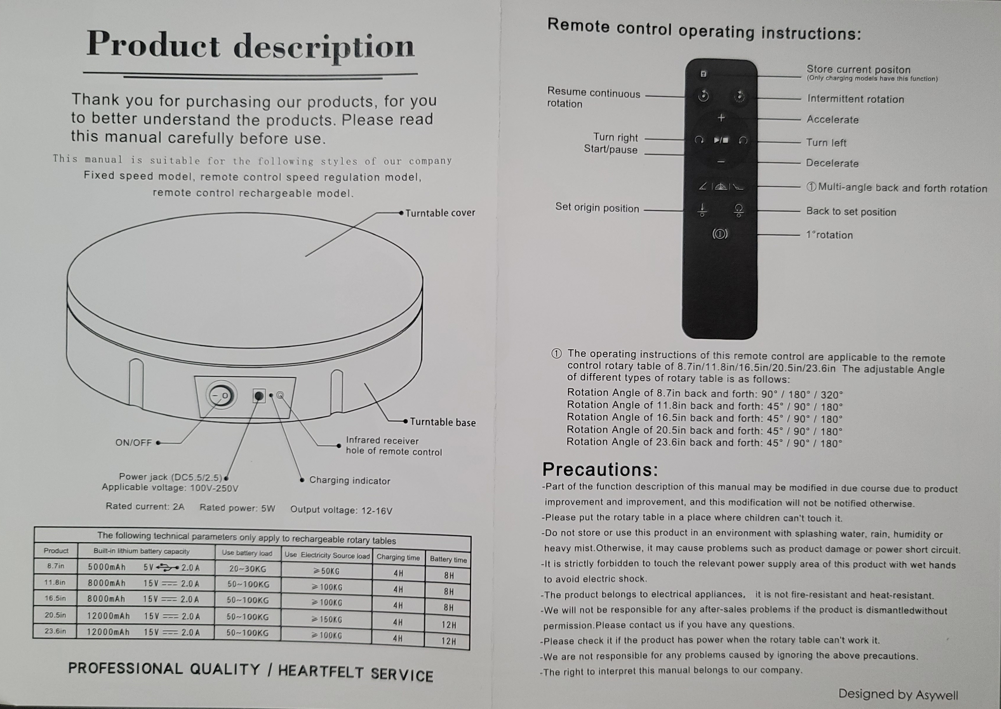 360 스마트 무빙 테이블 42cm, 전자동 턴테이블 사용설명서 Manual