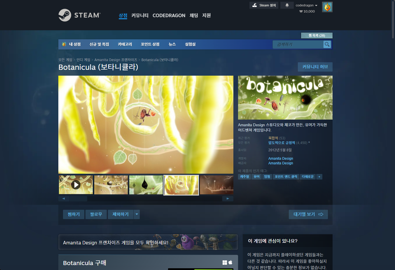 ₩17,000 → ₩0(FREE) Botanicula 보타니큘라 무료로 받기 영구소장; 에픽 게임즈 epic games EGS 한시적 무료 Get free copy