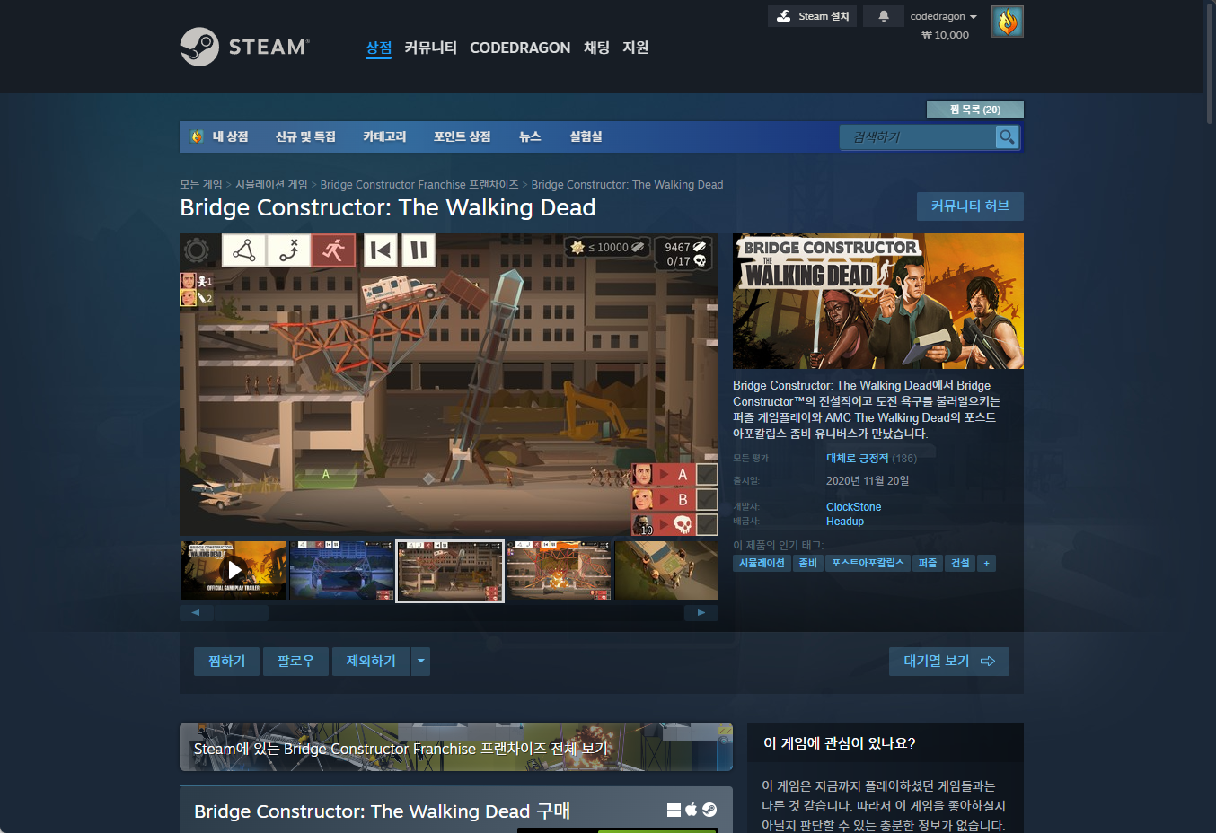 - Bridge Constructor: The Walking Dead"" 구매내역 확인하기 - 계정