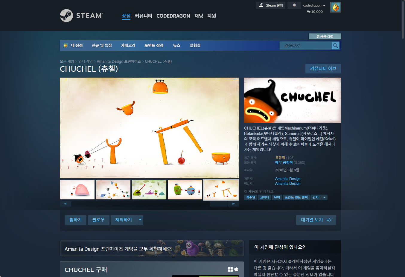 - "CHUCHEL (츄첼)" 한시적 무료게임 구매하기