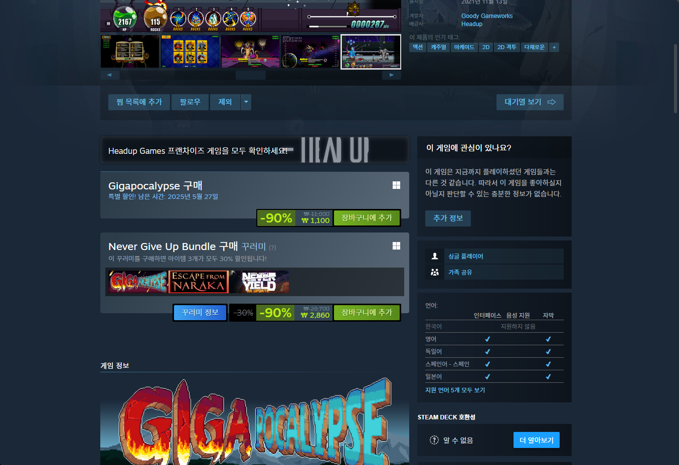 "Gigapocalypse" - Steam 스팀 게임 페이지