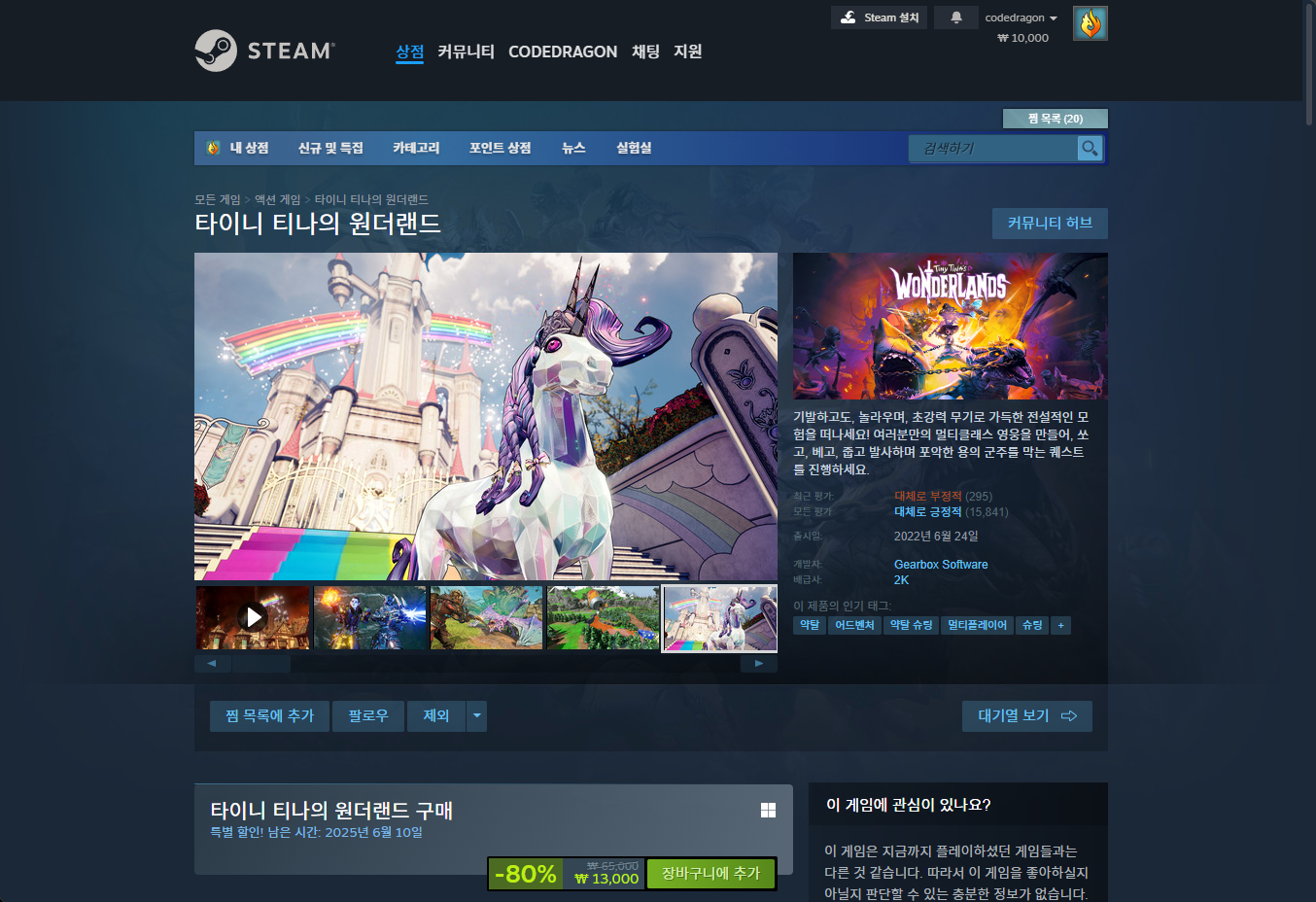 "Tiny Tina's Wonderlands (타이니 티나의 원더랜드)" - Steam 스팀 게임 페이지
