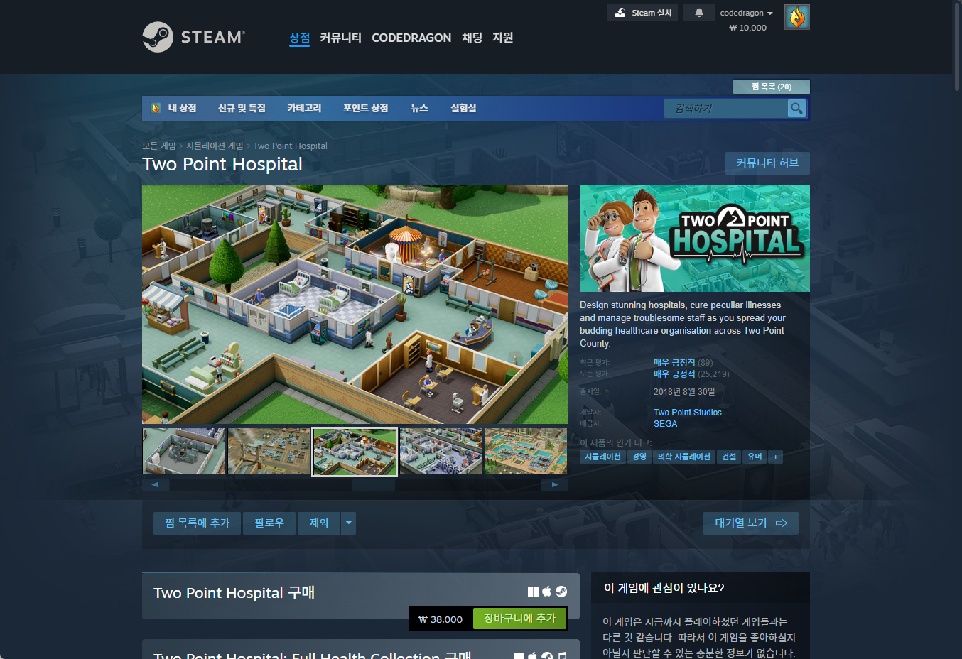 "Two Point Hospital (투 포인트 호스피탈)" - Steam 스팀 게임 페이지