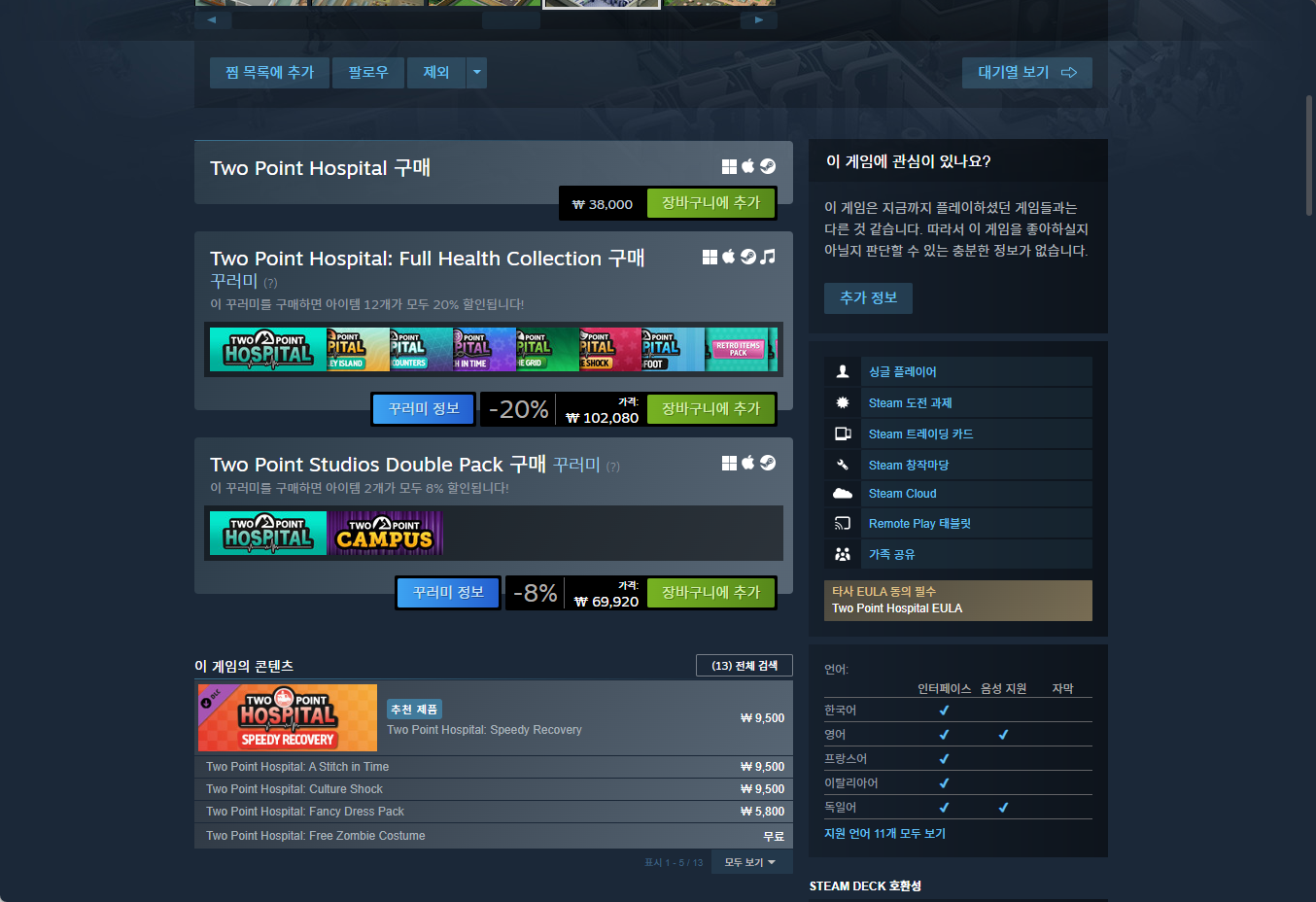 - "Two Point Hospital (투 포인트 호스피탈)" 게임 보유 확인