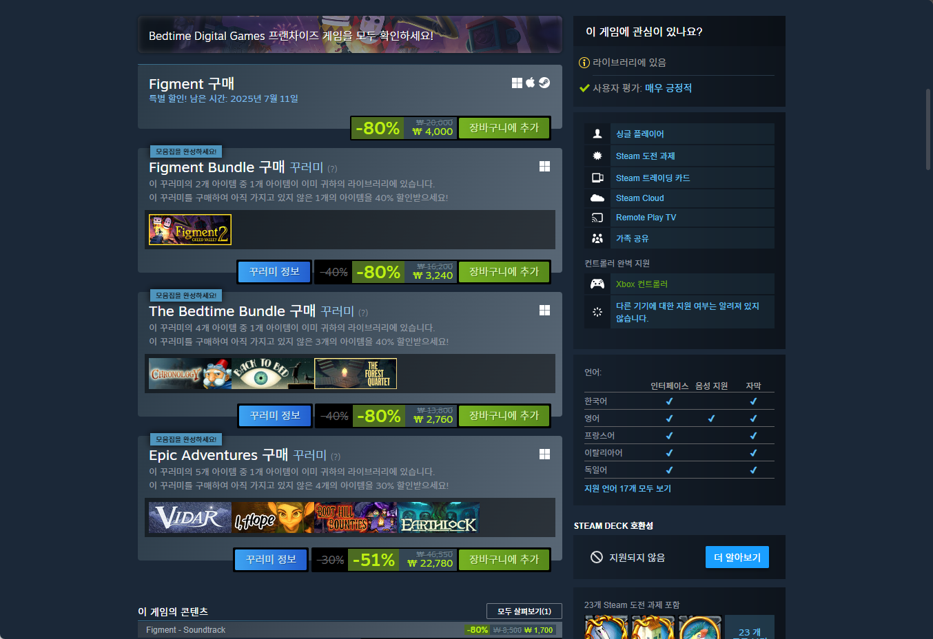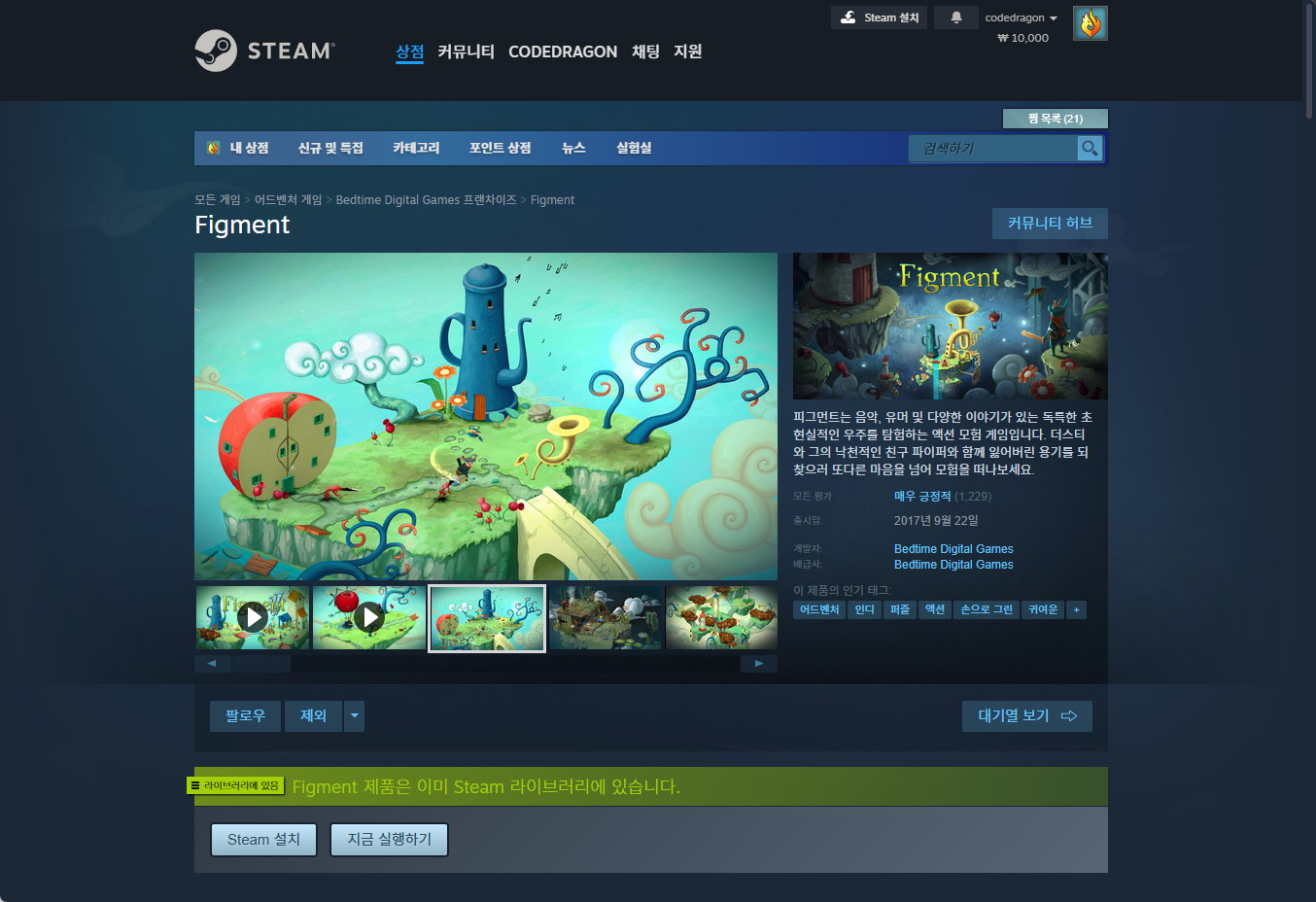 - "Figment (피그먼트)" 한시적 무료게임 구매하기