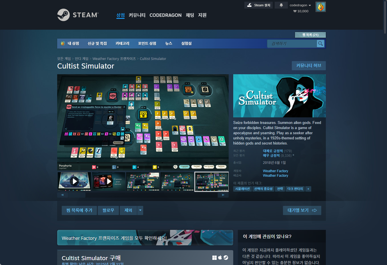 - "Cultist Simulator (컬티스트 시뮬레이터)" 구매내역 확인하기 - 계정