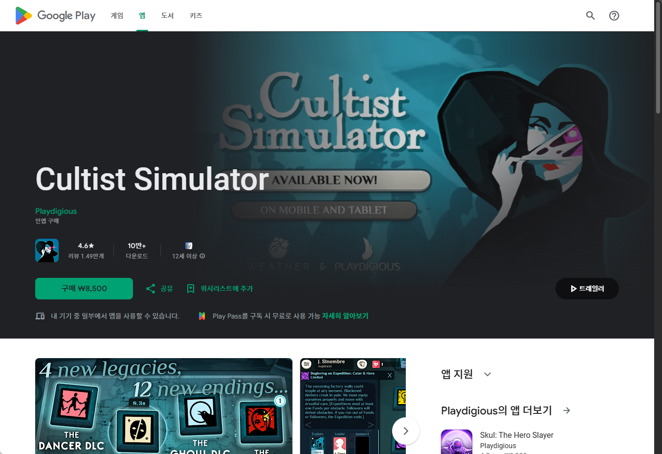 - "Cultist Simulator (컬티스트 시뮬레이터)" - 구글 플레이 스토어 Google Play Store 게임 페이지