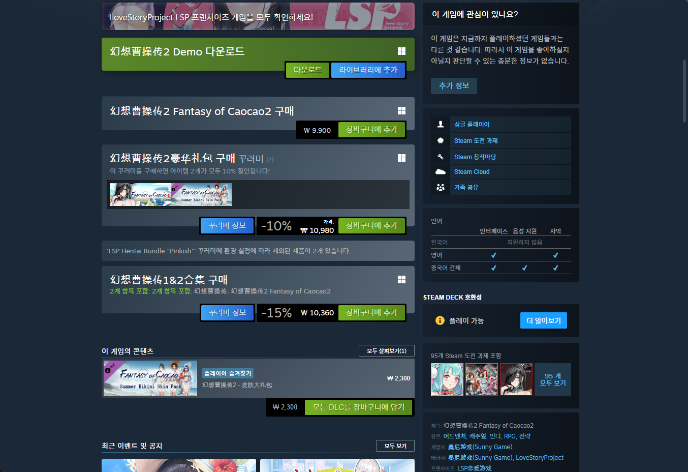 - "Fantasy of Caocao2 (환상조조전2)" - Steam 스팀 게임 페이지